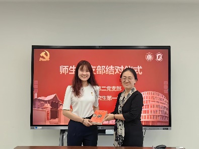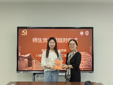 表彰仪式后,举行师生党支部结对仪式,教工党支部书记为研究生党支部书记赠书,通过师生党支部结对形式发挥教工党员教书育人的先锋模范作用,达到师生互动、共同发展的目的,实现党建与专业教育双向融入,提升立德树人效果。