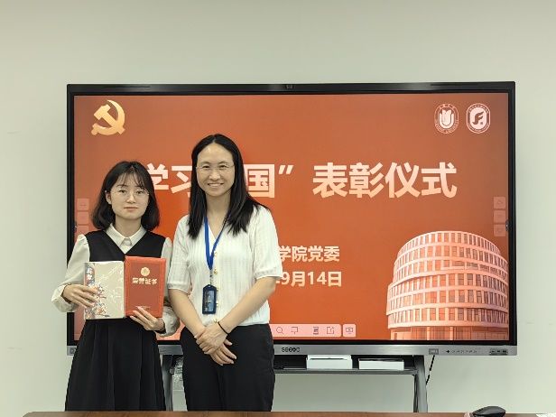 专题交流结束后,举行“学习强国”表彰仪式,学院党委为主题教育期间荣获“学习之星”和“进步之星”的党支部颁发了荣誉证书,表彰先进、树立典型,激励师生党员在积极运用“学习强国”学习平台的基础上,进一步强化思想武装,持续增强学习的积极性和主动性,在互比互学中突出实效,在真学真信中锤炼党性。