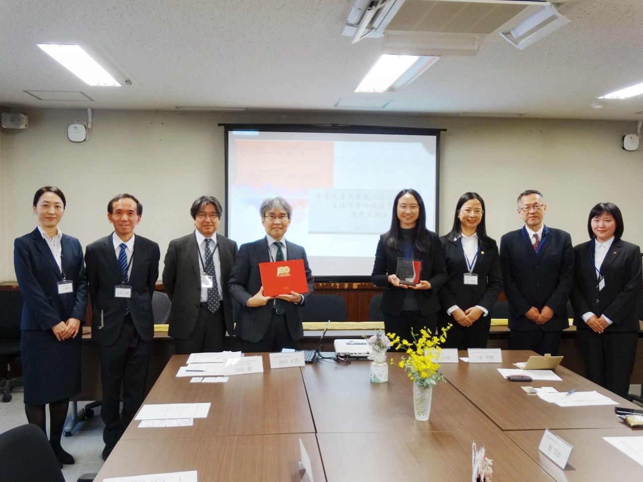 11月16日,代表团一行赴千叶大学访问并看望Beat365中文官方网站在千叶大学学习的两位交换学生。交流会上,贾小琴副书记与千叶大学人文公共学府长荻山正浩教授就双方取得的合作阶段性成果互相表达感谢,并与山田贤副校长就本科领域的深化合作及短期交换留学项目的开展进行了友好交流,两校将进一步聚焦文科领域合作,开展课程共建、资源共享、联合科研等交流合作。双方的友好合作将助力Beat365官网培养具有全球视野的卓越创新型外语人才,践行融通中外、促进中外文明互鉴的世界一流高校建设使命。
