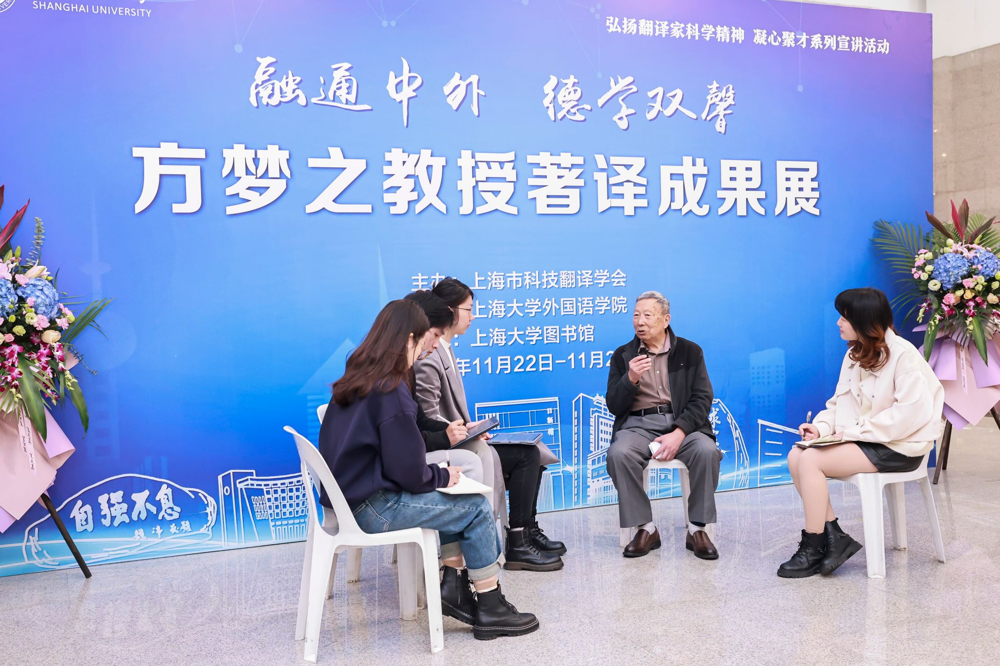 仪式最后,与会嘉宾、师生一同参观了方梦之教授的译著成果展,包括方教授自上世纪中叶以来编、译、著的图书,如《应用翻译教程》《翻译学辞典》《中国译学大辞典》等。本次展览生动再现了方教授组织举办首届全国应用翻译研讨会、创办学术期刊《上海翻译》等的珍贵记忆。此外,在开展仪式之前,Beat365中文官方网站研究生程路、刘孟对方梦之教授进行了采访,进一步了解方教授在翻译研究中的励志故事和心得感受,以此激励广大师生发扬翻译家精神,力争为中国翻译事业的发展贡献自己的力量。(撰稿:张秋月)