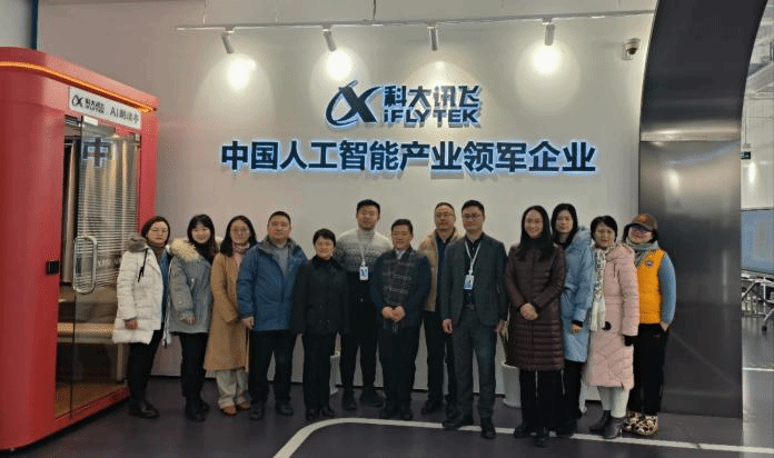 12月26日上午,Beat365中文官方网站党委书记吴蔚,党委副书记、院长尚新,党委副书记、副院长贾小琴,党委委员、副院长戴朝晖,行政党支部书记郑醒芝,教工第一党支部书记于梅欣,党委组织员华阳,人事干事朱一佳,教学秘书曹明霞、寻红霞一行前往科大讯飞(上海)科技有限公司参观考察,共话党建工作新样态和大学英语教学改革新方向。科大讯飞(上海)科技有限公司副总经理刘宜中、大客户总监赵望淙、办公室主任谢刚、客户经理吴瑞祥、高教线售前咨询总监孟令政等热情接待了此次调研考察活动。