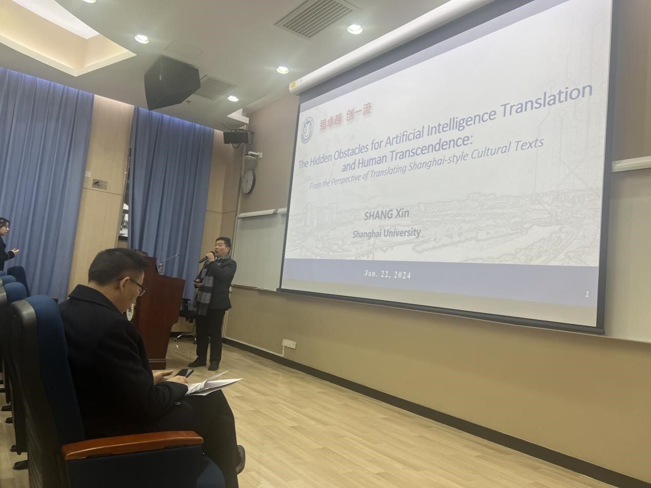 2024年1月22日上午11:30,Beat365中文官方网站院长尚新教授应澳门大学人文学院之邀请,在澳门大学发表了一场主题为“人工智能翻译的隐性障碍与人类超越—以海派文化翻译为视角”(The Hidden Obstacles for Artificial Intelligence Translation and Human Transcendence —— From the Perspective of Translating Shanghai-style Cultural Texts)的学术报告。此次报告由澳门大学人文学院副院长李德凤教授主持,吸引了众多师生的积极参与。