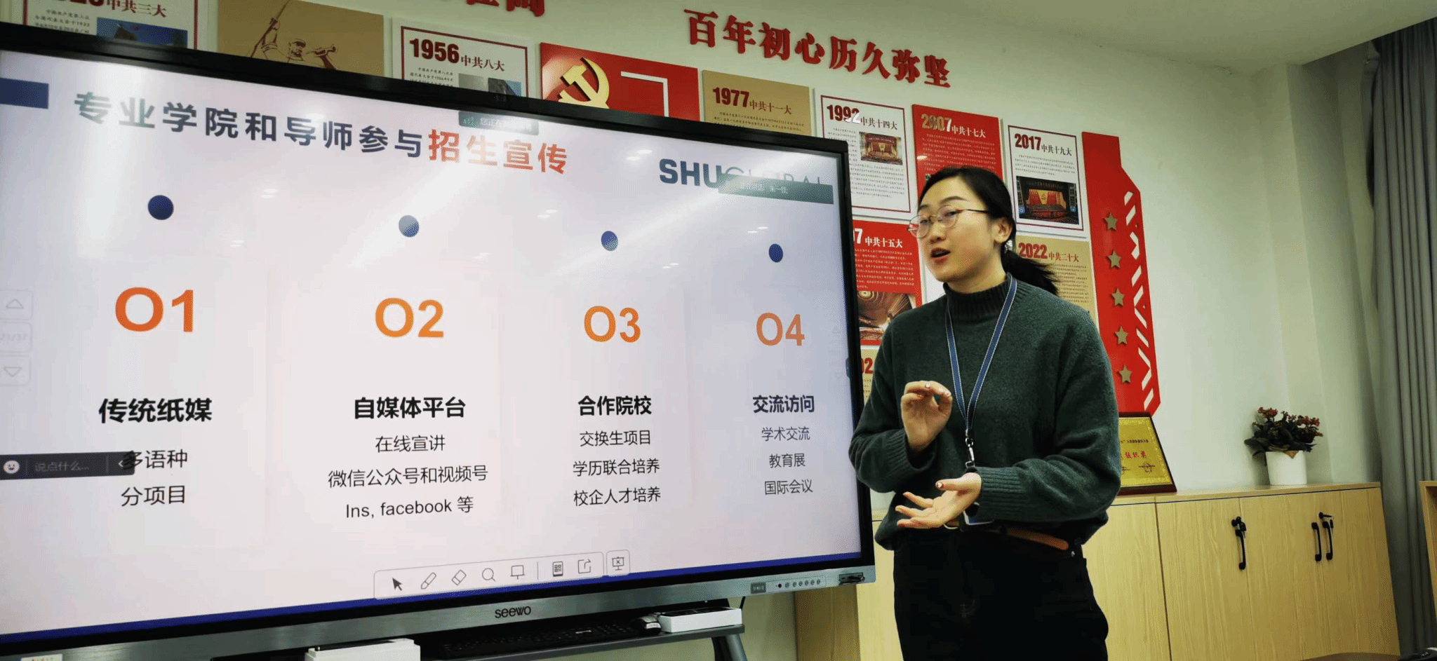 在国际学生招生方面,王净老师和刘圆老师详细分享了国际学生的招生及审核流程、相关政策依据以及招生时间节点等事项,为教师们提供了实用的操作指南。