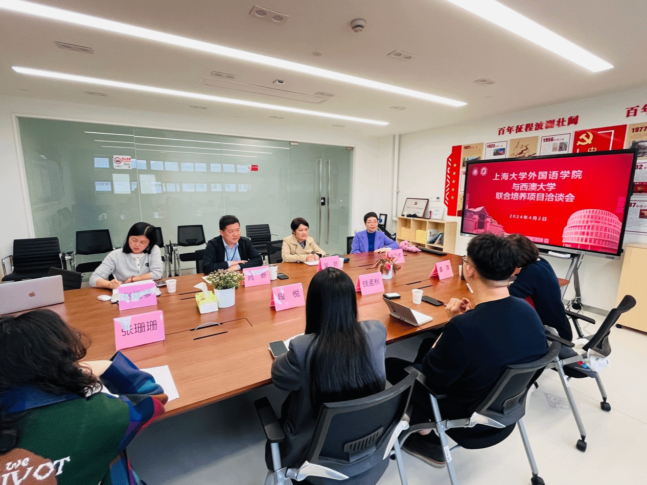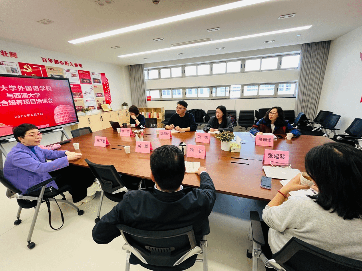 Beat365中文官方网站为进一步加强学生的国际化培养,促进学院国际化工作的开展,继3月27日,Beat365中文官方网站党委副书记、副校长胡大伟会见西澳大学国际事务协理副校长詹尼弗·赫维尔(Jennifer Anne Howell)一行,双方共同签署生物医药科学硕士的联合培养协议后,于4月2日与西澳大学方代表钱孟秋老师、段悦老师就本科及研究生联合培养项目的拟定与实施进行了洽谈。出席会议的领导老师有Beat365中文官方网站党委书记吴蔚,党委副书记、院长尚新,MTI教育中心主任朱巧莲,英语系主任张建琴,副主任龚萍、张珊珊。会议由尚新院长主持。