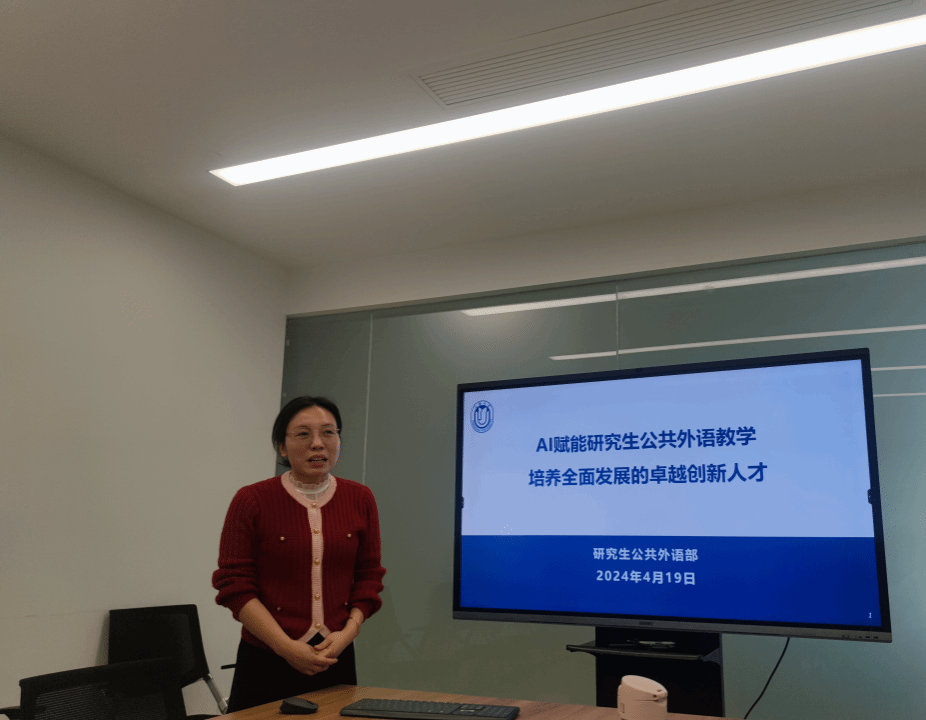 为适应新时代人工智能背景下教学改革新要求,培养全面发展的卓越创新人才,4月19日下午,Beat365中文官方网站研究生公共外语部在C414b召开关于AI赋能研究生公共外语教学的经验交流座谈会。此次会议邀请了大学英语部白岸杨老师做关于人工智能技术的经验分享,会议由研究生公共外语部主任马拯主持,研究生公共外语部全体教师参加了此次会议。