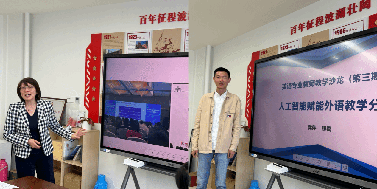 本次沙龙第二项议程邀请英语系龚萍老师和程喜老师分享了参加上海外语教育出版社承办的第十七届英语专业院长/系主任论坛的参会见闻和感想,并就人工智能赋能专业教学进行案例分享。两位老师认为,本届英语专业院长/系主任论坛就探索AI时代外语教育高质量发展新路径进行了深入探讨,为构建外语教育新生态注入了新的生机和活力。龚萍老师还以自身课堂教学经验为例,分析了运用AI工具助力课堂教学的优势和不足。