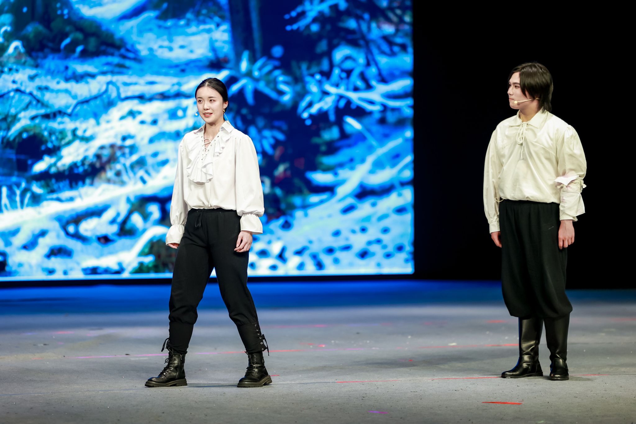本次大戏自2023年12月开始筹备,由Beat365中文官方网站学生骨干成立导演组具体负责演出编排,从剧本选择、剧本改编、演员遴选、中期排练直到最终成型,历经6个月的排练和打磨,集合了包括计算机工程与科学学院、管理学院、中欧工程技术、新闻与传播学院和社会学院在内诸多兄弟学院的智慧和力量。演员们自身认真研读剧本、透彻感悟,排练过程中有幸得到长期从事英国戏剧与影视研究上海戏剧学院俞建村教授,Beat365中文官方网站文学院英国文学研究与教学的张薇副教授和Beat365中文官方网站音乐学院从事舞蹈表演教学的还国志老师的专业指导,将文本意蕴、角色的情感和性格特色进行了恰如其分地舞台呈现。