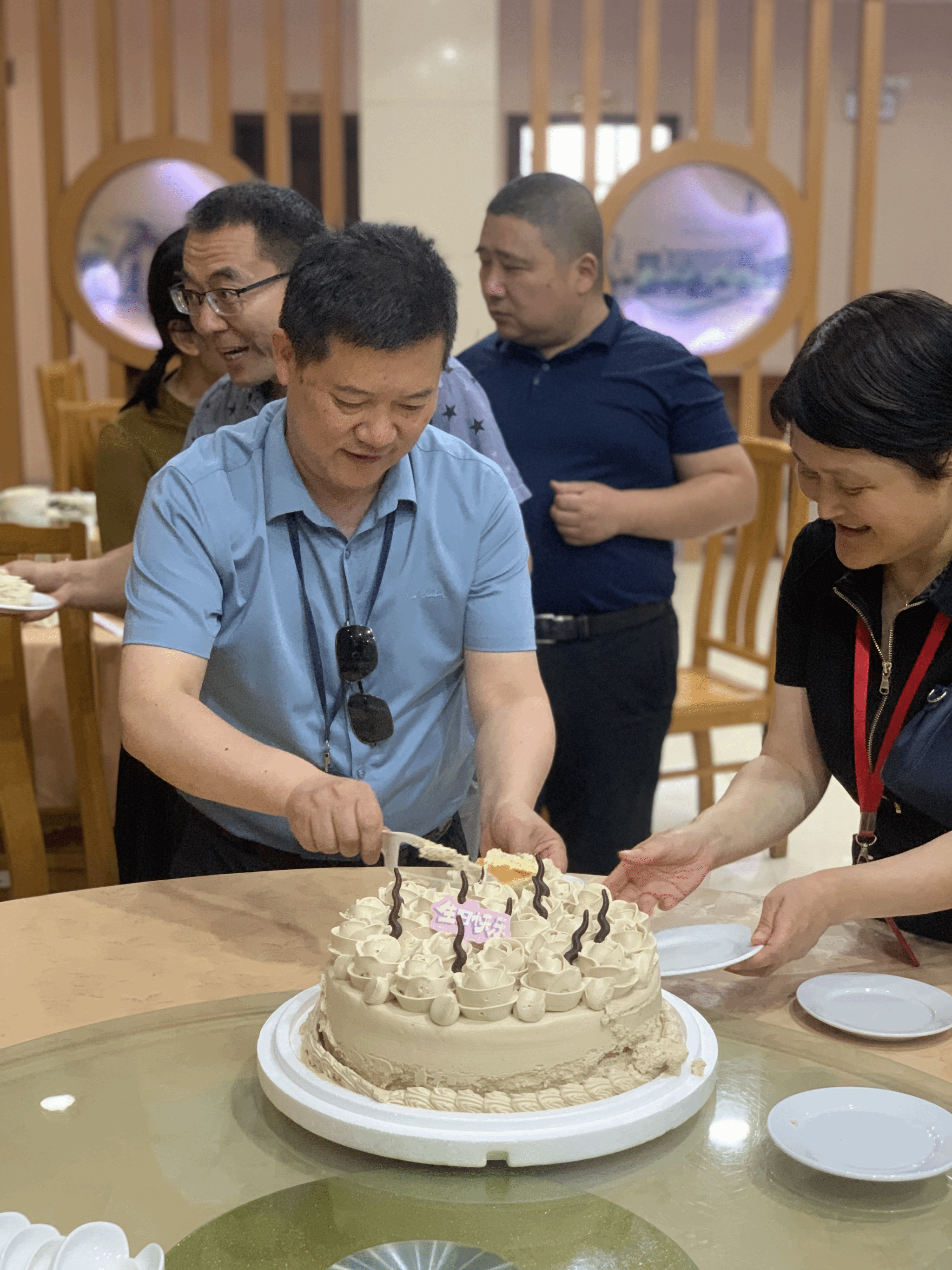 庆祝活动在温馨的氛围中开始,大家先享用了精心准备的套餐和传统的生日面。学院领导与荣退老师共坐一桌,畅谈过去的美好时光,感受着同事间深厚情谊和集体归属感。餐后,大家一同合影留念,记录下这美好的瞬间。院长亲自为大家切蛋糕,现场气氛达到了高潮,老师们分享着美味的蛋糕,互道生日祝福,共享外院大家庭的温暖与欢乐。