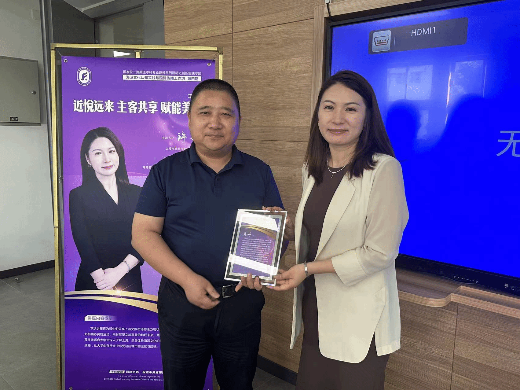 随后,戴朝晖副院长对许老师的分享进行了总结发言,表达了对同学们了解上海故事、讲好上海故事的期盼;在互动环节,许老师详细地为同学们答疑解惑。活动最后,戴朝晖老师为许婷老师赠予了感谢证书,并合影留念。