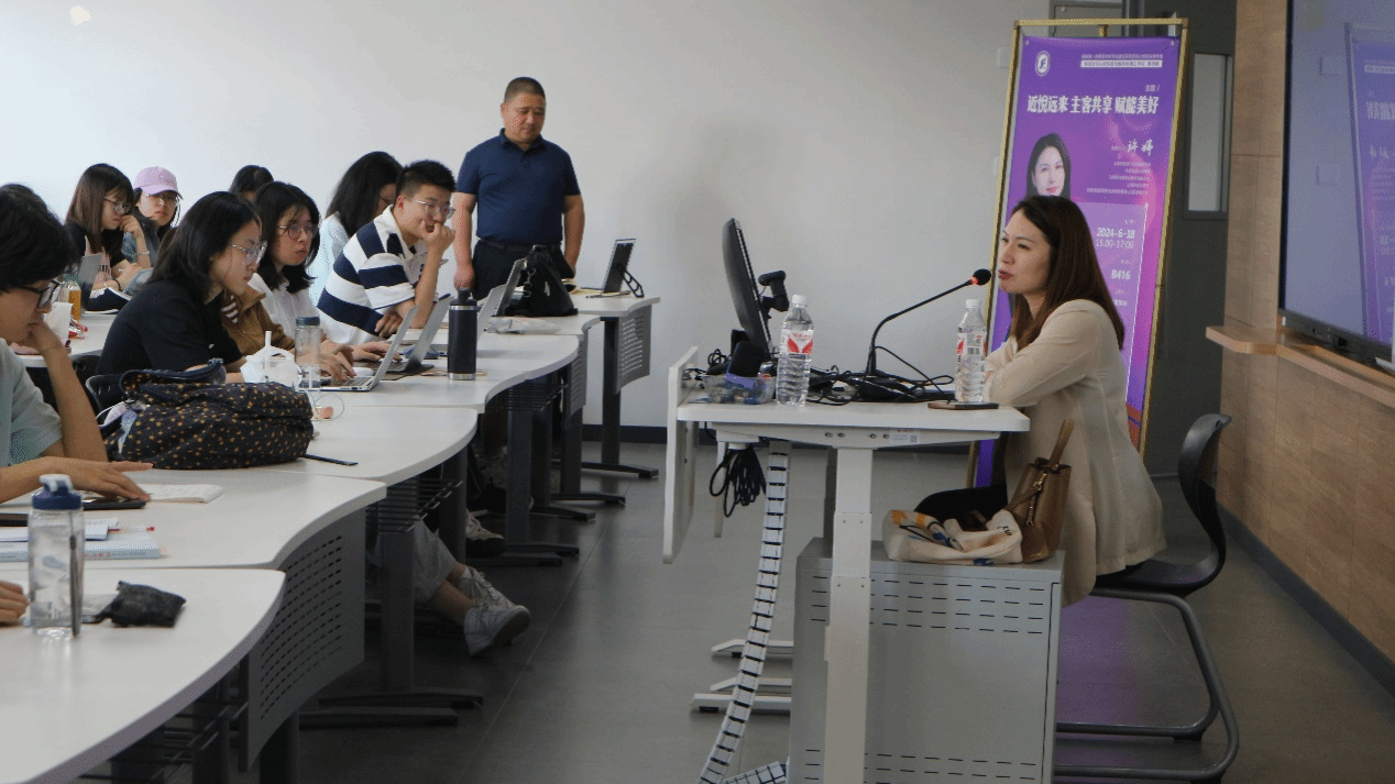 许婷老师为同学们带来了题为《近悦远来、主客共享、赋能美好》的上海文旅与海派文化国际传播的专题分享,围绕上海文旅市场的活力现状、独特魅力和精彩实践活动及展望文旅事业的灿烂未来娓娓道来。许老师首先介绍了我国文旅市场的三个特征:一是文旅融合还在不断深入,二是城市区域性组合文旅呼之欲出,三是多元深度的综合体验受到热捧。许老师以上海博物馆东馆和“沉浸式文旅”等现象为例,进一步向大家展现了文旅产业的融合发展。随后,许老师结合上海城市定位向同学们勾勒出上海文旅市场的四大特点,即突出都市型、强调融合性、呈现国际化和注重体验度。她接着通过许多生动鲜活的案例向同学们展示了上海文旅的相关实践,如“白玉兰甄选”品牌创建通过推选高质量文旅精品、提升旅游服务水平和体验、改善旅游消费环境等措施,释放了旅游消费潜力、提振了旅游消费信心、满足了旅客多元化个性化的需求。