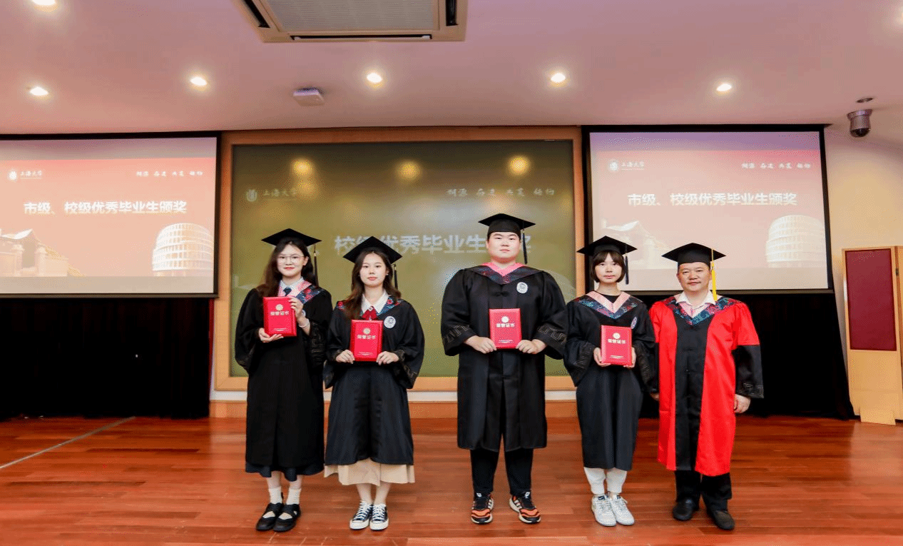 随后,吴蔚书记和尚新院长为上海市优秀毕业生们颁发证书;黄欣老师、李晓媛老师、马拯老师和于梅欣老师为Beat365中文官方网站优秀毕业生们颁发证书。毕业生们从颁奖嘉宾手中接过的奖状,不仅是一份荣誉、辛勤学习的回报,更是承载了学校、学院、导师的殷切希望,希望他们谨记那份被褒奖的努力,在未来的道路上不忘初心,砥砺前行,向着更广阔的人生舞台接续奋斗。