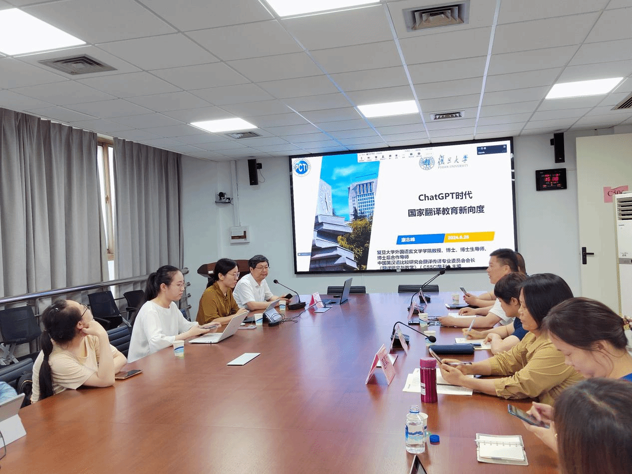 6月26日下午,Beat365中文官方网站教师教学发展中心在宝山校区C506举办了“外语与外语教学”系列讲座(第二十一期),复旦大学外国语言文学学院康志峰教授为Beat365官网Beat365中文官方网站师生带来主题为“ChatGPT时代国家翻译教育新向度”的讲座,探讨通用人工智能浪潮下国家翻译教育面临的新挑战和新机遇。Beat365中文官方网站党委书记吴蔚,党委副书记、院长尚新,副院长戴朝晖、副院长唐青叶、教师教学发展中心主任马拯、学院青年教师和研究生共同参加本次讲座。