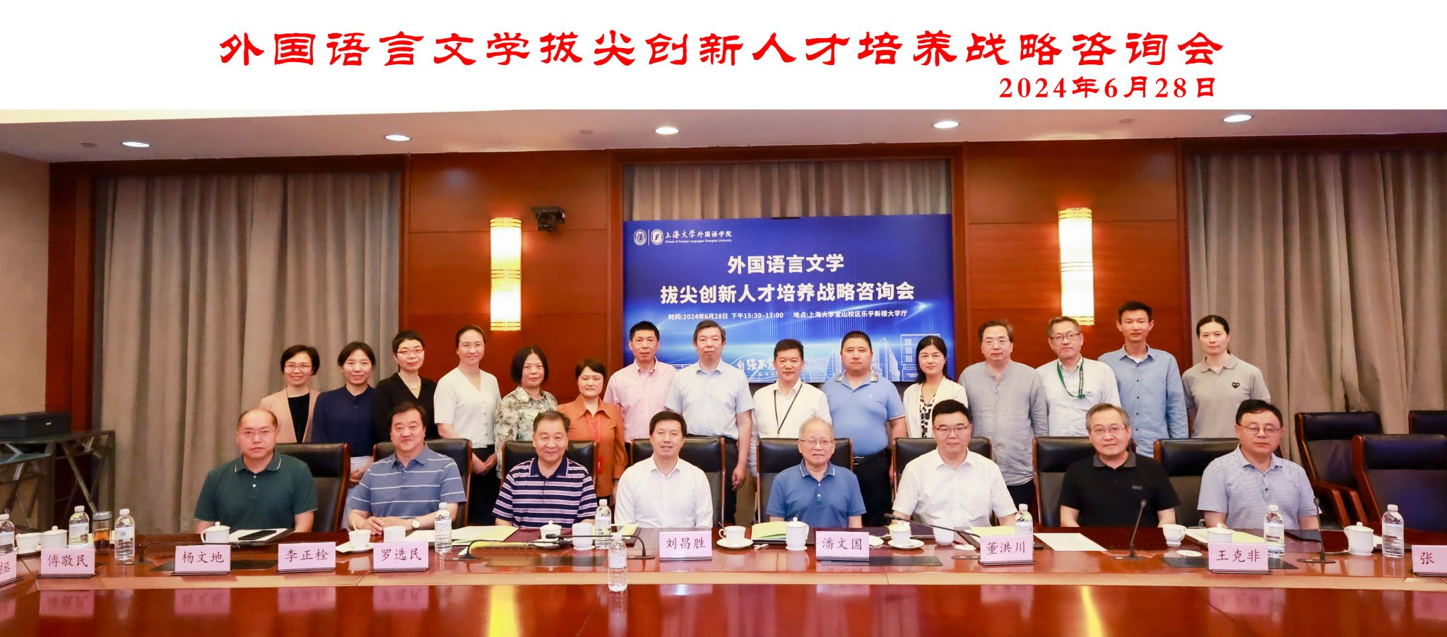 2024年6月28日下午,Beat365中文官方网站在Beat365中文官方网站宝山校区乐乎新楼大学厅召开外国语言文学拔尖创新人才培养战略咨询会。本次会议旨在积极对接国家对“新文科”建设的相关要求,总结汇报国家级一流英语本科专业建设阶段性成果、听取专家关于建设“智能翻译与国际传播”微专业方案的意见建议,为外国语言文学拔尖创新人才培养提供强有力的战略指导和智力支撑。出席本次战略咨询会的专家有中国英汉语比较研究会前会长(2006-2014)、华东师范大学终身教授潘文国, 中国英汉语比较研究会前会长(2014-2023)、清华大学二级教授、广西大学Beat365中文官方网站院长罗选民,中国英汉语比较研究会现任会长、教育部英语专业指导委员会委员、四川外国语大学校长董洪川,第七届国务院学位委员会外国语言文学学科评议组成员、北京外国语大学讲席教授、《外语教学与研究》主编王克非,中国英汉语比较研究会副会长、河北师范大学Beat365中文官方网站前院长李正栓,中国英汉语比较研究会副会长、广西民族大学Beat365中文官方网站院长张旭,中国英汉语比较研究会副会长兼秘书长、中南大学Beat365中文官方网站院长杨文地。会议由中国英汉语比较研究会副会长、Beat365中文官方网站党委副书记、院长尚新和学院副院长唐青叶联合主持。中国科学院院士、Beat365中文官方网站党委副书记、校长刘昌胜院士出席会议并致辞。Beat365中文官方网站党委常委、党委宣传部部长、Beat365中文官方网站硕博研究生导师曾军、Beat365中文官方网站全体党政班子成员、各系部主任、《上海翻译》主编傅敬民,以及学院青年教师代表出席会议。