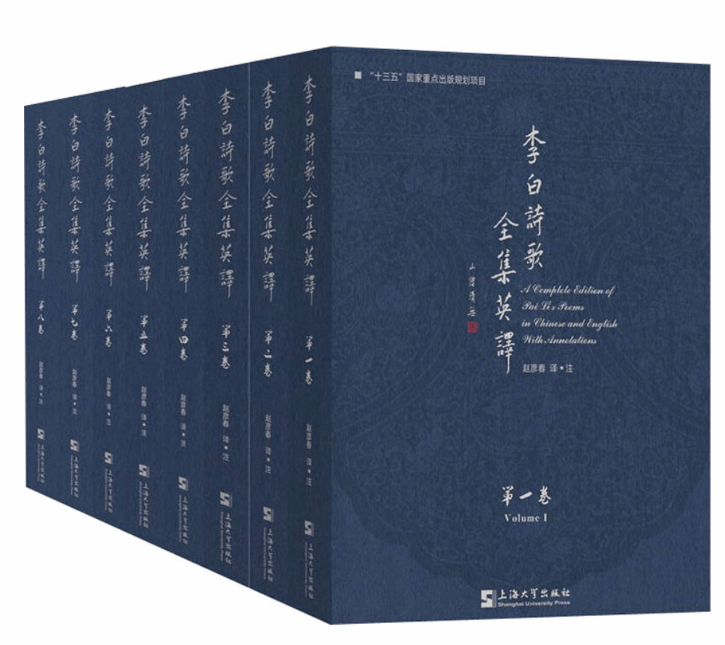 《李白诗歌全集英译》共8卷,收录1052首诗歌。该著作第一次系统性、全面性、穷尽性地整理、英译了李白诗歌,填补了李白诗歌英译的空白。全译本秉持“以诗译诗”“以经译经”的原则、方法和标准,突破语言和文化的障碍,在内容、音律、风格和文本形式上逼近原文,真正做到“音”“形”“义”的有机结合。在中华文化“走出去”“讲好中国故事”的时代背景下,《李白诗歌全集英译》提炼展示中华文明的精神标识和文化精髓,向世界推介具有中国特色、体现中国精神、蕴含中国智慧的优秀文化。