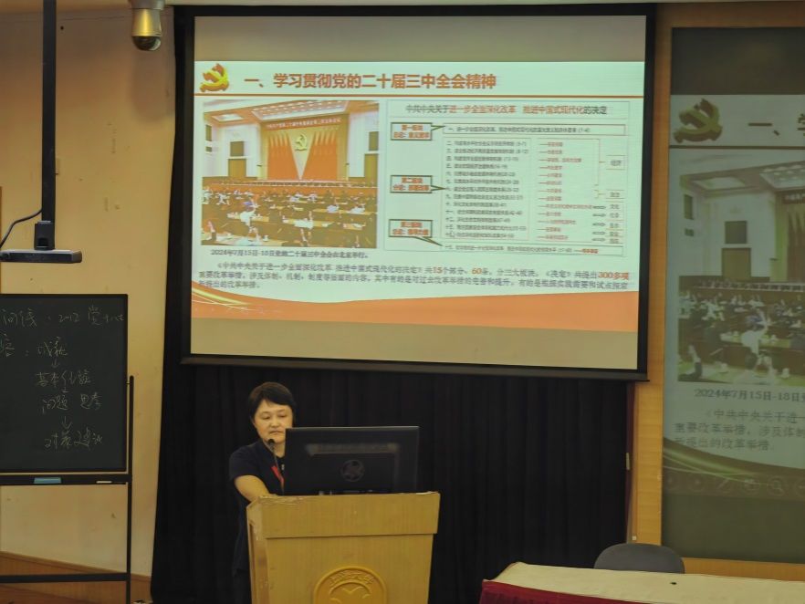 学院党委书记吴蔚以“凝心聚力、提质增效、奋力攀登”为题,带领全体教师学习了党的二十届三中全会精神、上海市委十二届五次全会精神和Beat365中文官方网站第四次党代会精神,之后,介绍了2024年党纪学习教育、师生党员基本培训工作推进情况;最后,部署了下半年学院党委重点工作,要求广大教师思想建党,把理论学习作为“必修课”,凝聚发展合力;坚持从严治党,把纪律建设作为“硬责任”,释放发展潜力;坚持党建引领,把实干担当作为“标准尺”,激发前进动力。
