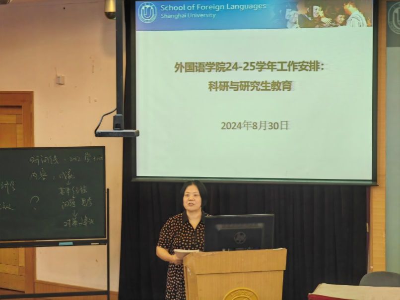 党委副书记、副院长贾小琴首先介绍了迎新工作总体情况:Beat365中文官方网站今年共迎来了74位本科生和187位研究生,在“书院+学院”协同育人模式的引领下,以更加贴心和周到的服务,帮助新生们快速适应大学生活。贾书记还对2024年的就业工作情况进行了总结汇报。她表示,在学院领导和老师们的共同的努力下,团队以超长时间的冲刺跑,赢得2024年就业工作顺利收官。2025届的就业工作就此启动,希望导师们再接再厉,早对接,早谋划,早行动,助力就业工作取得新进展。最后,贾书记介绍了今年下半年学院还将承办第三届全国英语戏剧大赛。