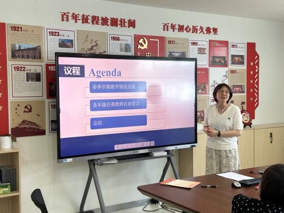 首先,龚萍副主任就2023-2024学年春季学期的教学情况做了总结,分析了学生出勤、课程设置、教学质量提升等问题。之后,龚老师就2024-2025学年秋季学期的主要教学相关工作做了详细解读,包括退休教师工作量、班级数量设置、学生成绩评定、毕业论文指导工作等。