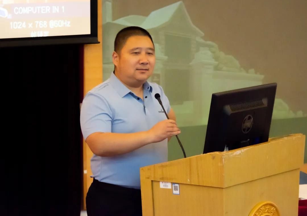 典礼上,研究生公共外语部主任马拯副教授作为导师代表发言,结合自身经历进行学习和科研的经验分享,并以“学海无涯,勤为舟”的哲理,鼓励新生们在今后人生道路上勤勉不辍,勇于尝试,敢于挑战,始终怀揣热忱之心,谱写青春华章。