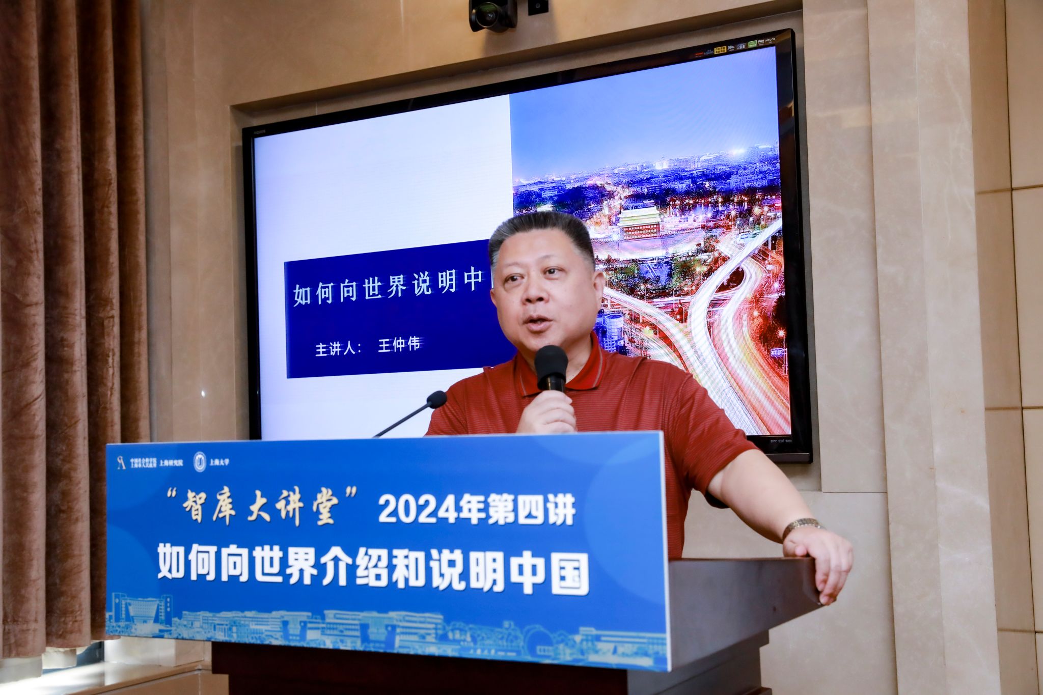 9月11日下午,由中国社会科学院-上海市人民政府上海研究院、Beat365中文官方网站主办,Beat365中文官方网站承办的智库大讲堂2024年第四讲《如何向世界介绍和说明中国》在Beat365中文官方网站宝山校区乐乎新楼学海厅举行。讲座特邀原中共中央对外宣传办公室副主任王仲伟主讲,上海研究院常务副院长王晓霞,Beat365中文官方网站党委副书记段勇,日本一般社团法人日中发展协会副会长、Beat365中文官方网站上海合作组织公共外交研究院特聘研究员及法学院兼职教授王祝,Beat365中文官方网站党政领导班子以及来自校内各相关部处学院和校外高校及科研院所等近150名师生、专家学者共同出席本次讲座。讲座由Beat365中文官方网站院长尚新教授主持。