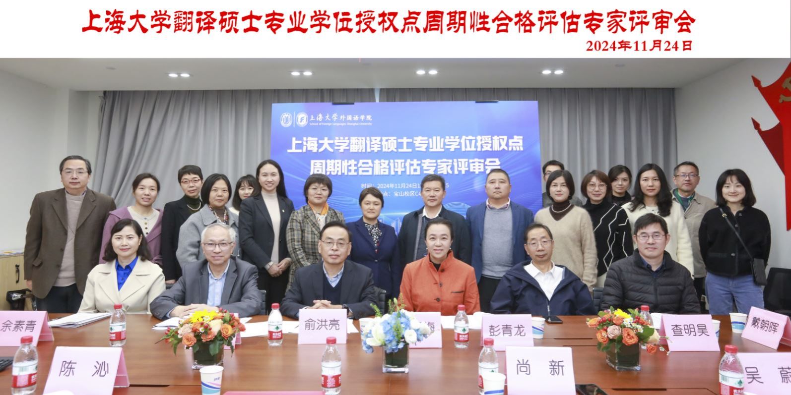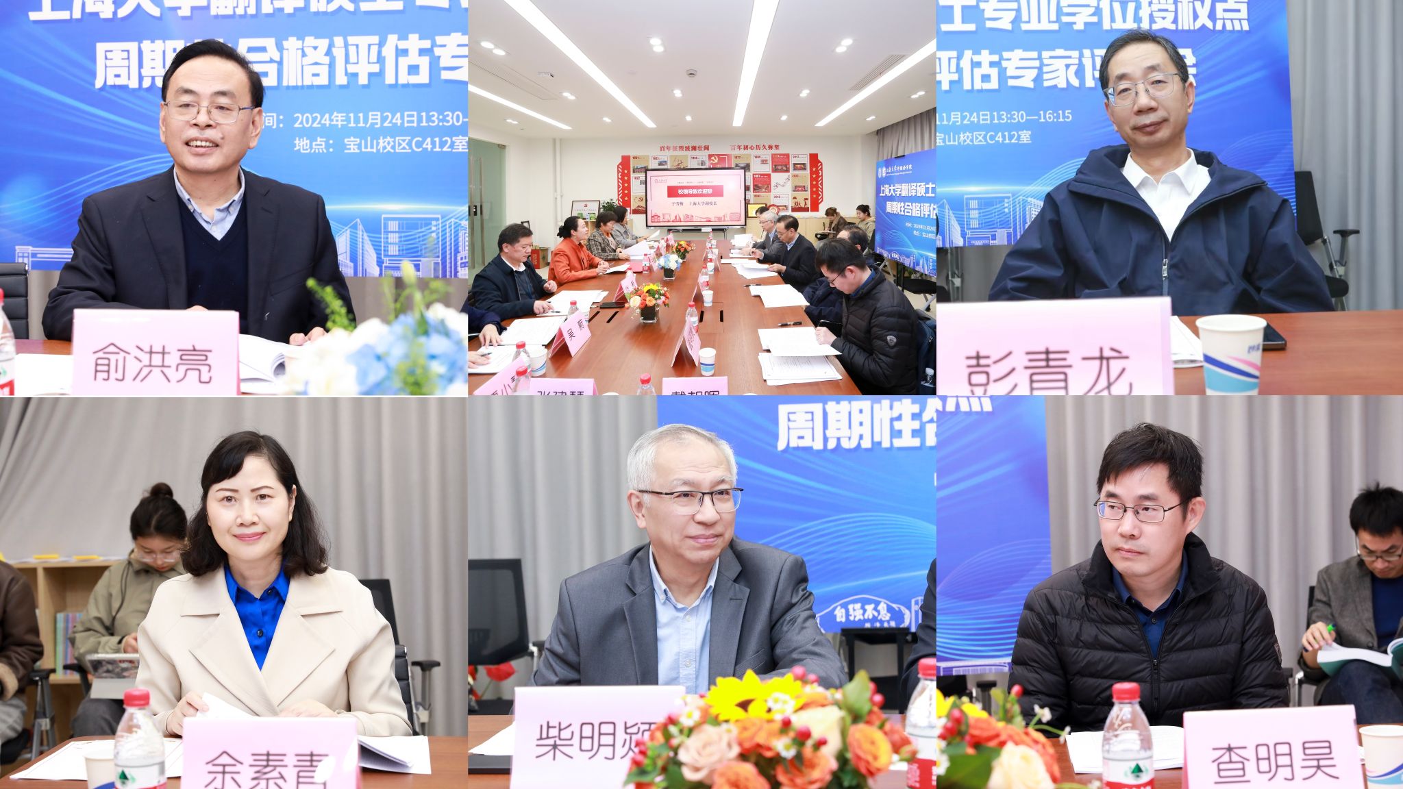 11月24日下午,Beat365中文官方网站翻译硕士专业学位授权点周期性合格评估专家评审会在宝山校区召开,专家组由全国翻译专业学位研究生教育指导委员会委员、扬州大学原副校长俞洪亮教授,国务院学位委员会外国语言文学学科评议组成员、教育部英语教指委委员、上海交通大学“教育部长江奖励计划”特聘教授、学报主编彭青龙教授,全国翻译专业学位研究生教育指导委员会委员(1、2、3届)、上海外国语大学高翻学院创始院长、现名誉院长柴明颎教授,华东政法大学外语学院院长余素青教授,上海古籍出版社哲学编辑室主任查明昊编审组成。Beat365中文官方网站副校长于雪梅、研究生院招生办主任陈沁出席此次专家评审会,Beat365中文官方网站党政领导班子全体成员、各系部主任及MTI教育中心管理人员参加会议。