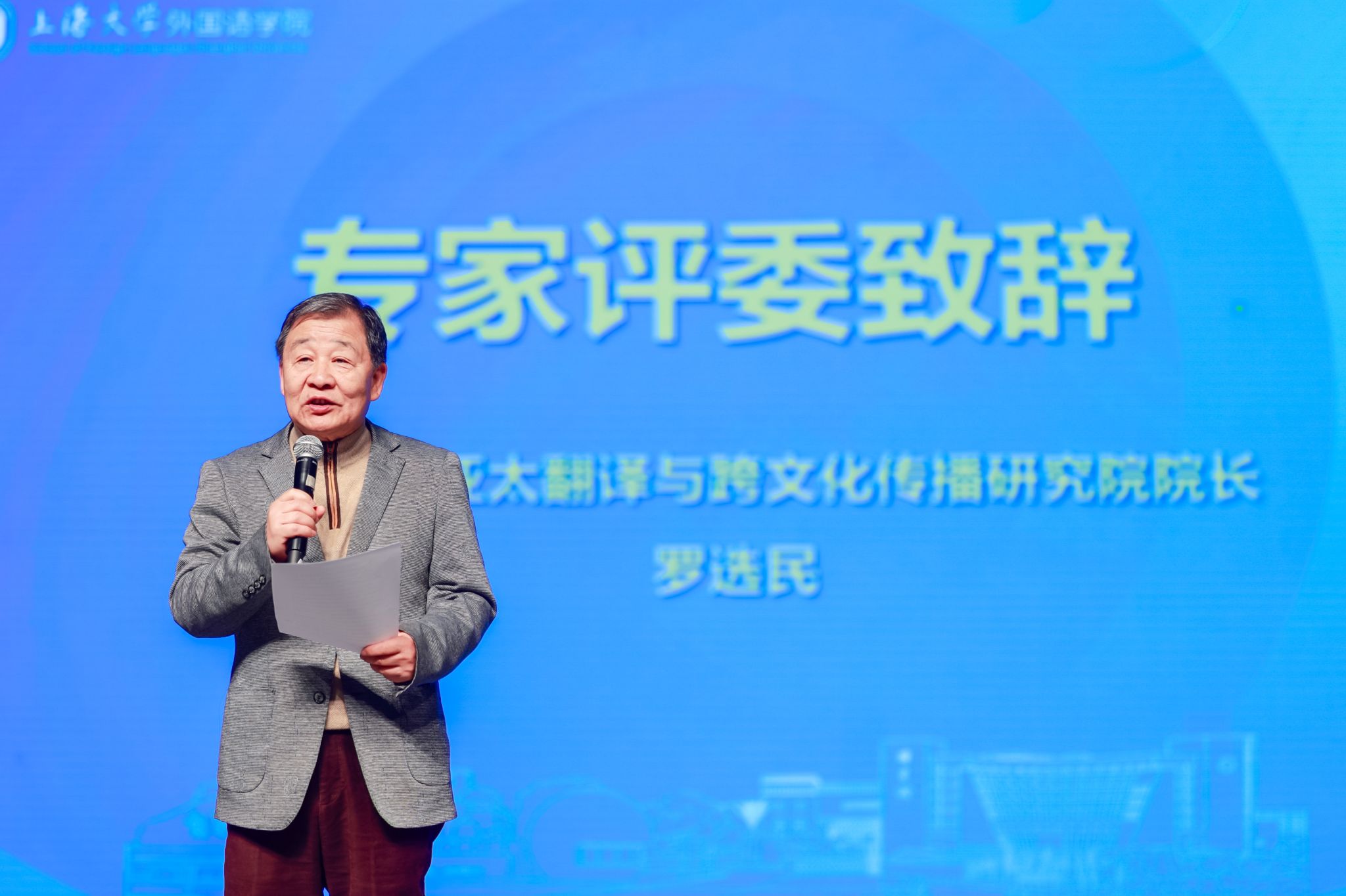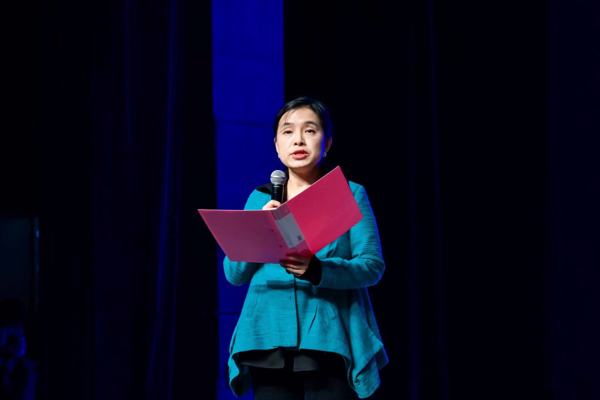 在所有剧目表演结束之际,汕头大学文学院院长毛思慧教授上台点评。毛教授对各参赛作品给予高度评价,并逐一剖析了每支队伍在英语口语的流畅与准确、演员们精湛的演技、剧本结构的严谨与逻辑性、情节张力的巧妙营造,强调了各组在灯光设计的巧妙、音乐氛围的营造、妆造细节的精致等方面的卓越表现,鼓励广大青年以英语戏剧为切入点,将语言和美育融入日常学习生活,在体验中感受中外文明交流之美。
