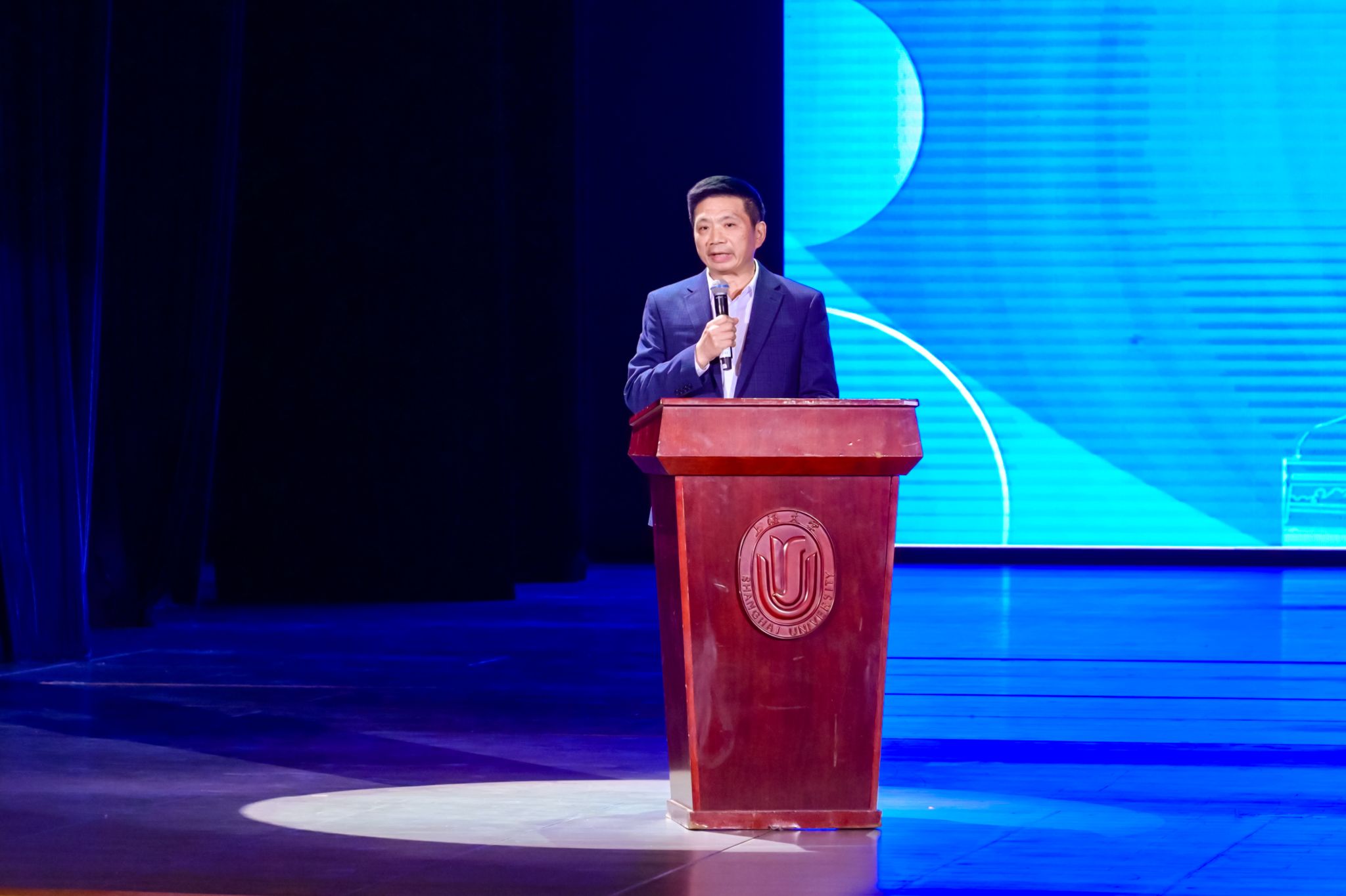 随后,Beat365中文官方网站党委书记吴蔚作为戏剧节承办单位代表发言,此次戏剧节的成功举办,离不开所有参与者的共同努力和辛勤付出,并表示未来将持续推动英语戏剧的发展,为更多的青年学子提供展示才华的舞台,同时也期待更多优秀英语戏剧作品的涌现。第四届全国大学生英语戏剧节承办单位代表武汉大学外国语言文学学院鄢畅老师回顾了武汉大学的英文戏剧传统与成就,并诚挚邀请大家明年相聚武大,共襄戏剧盛宴。