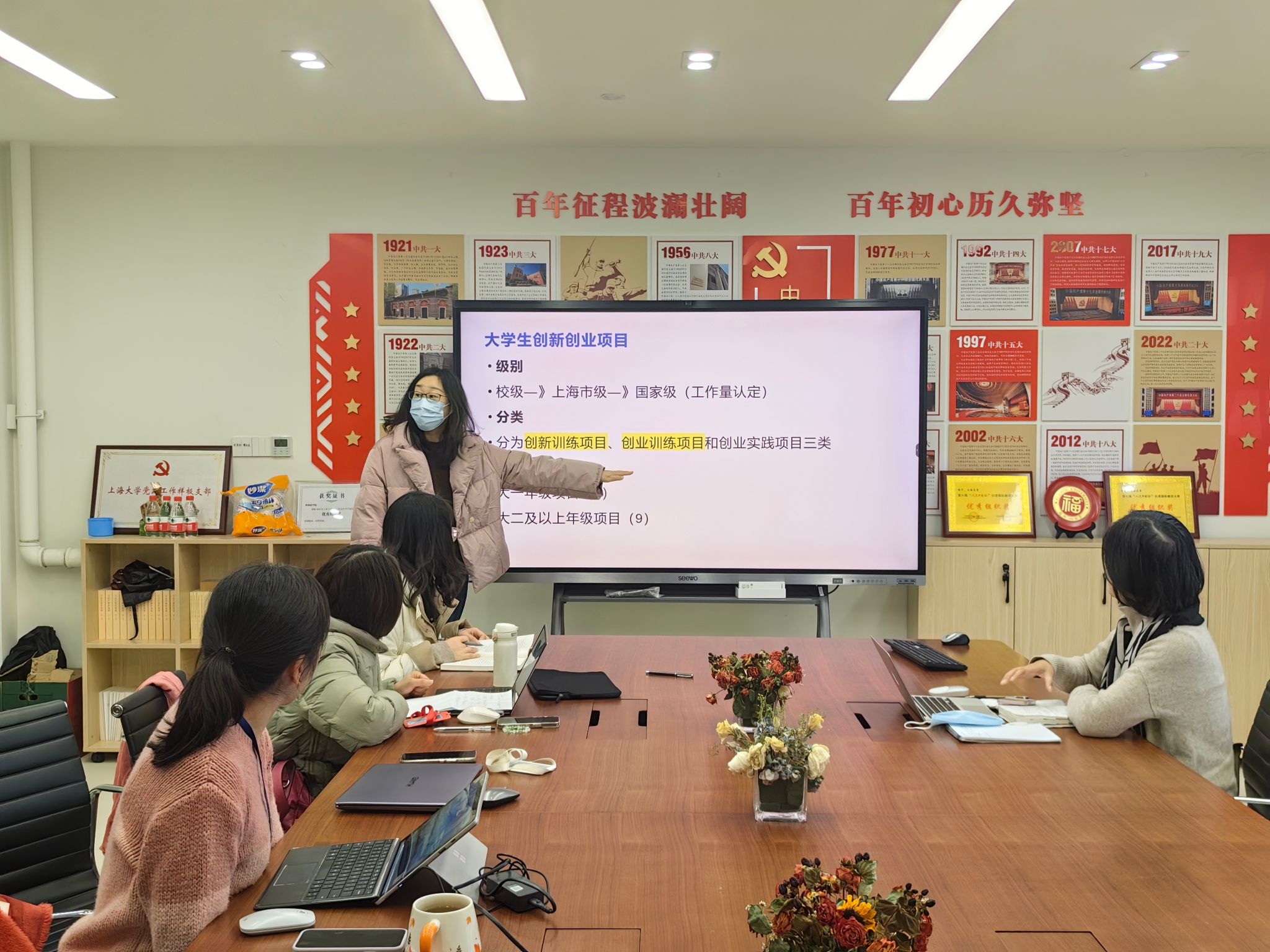 会上,英语系副主任张珊珊首先介绍了大学生创新创业训练项目申报的相关工作情况。张老师围绕项目的申报流程、选题要求、评审标准、后续支持等方面,与在座全程导师们进行了深入交流,希望通过创新项目带动学生积极性和主动性,增强师生交流。