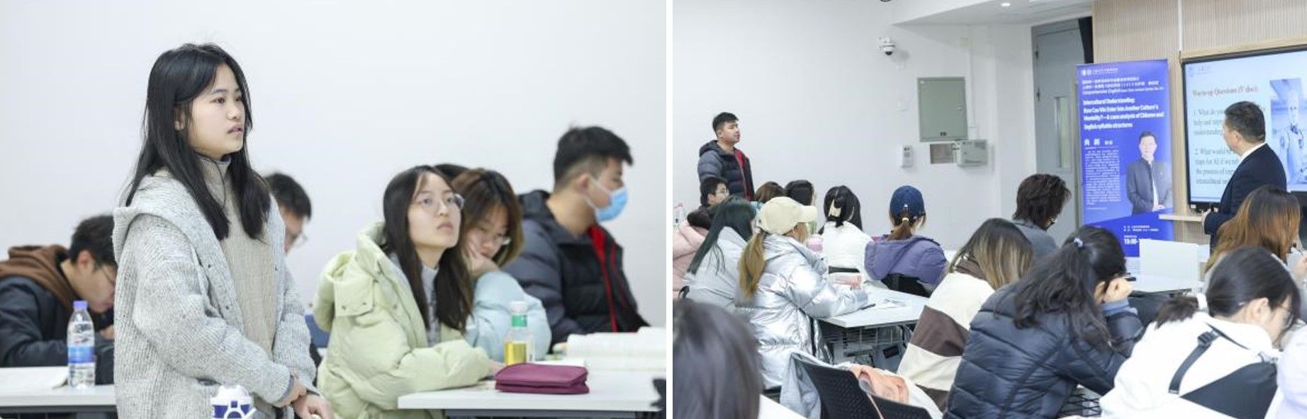 2025年3月17日,春季学期开学第一天,Beat365官网英语系上海市一流课程《综合英语(1-3)》公开课第四讲在B308顺利举行。公开课以Intercultural Understanding: How Can We Enter into Another Culture’s Mentality?—A case analysis of Chinese and English syllable structures为题,由课程负责人尚新教授主讲,团队成员雷远旻老师主持,授课对象为全体2024级英语专业的新生,英语系主任马拯副教授、学院部分老师旁听了此次课程。