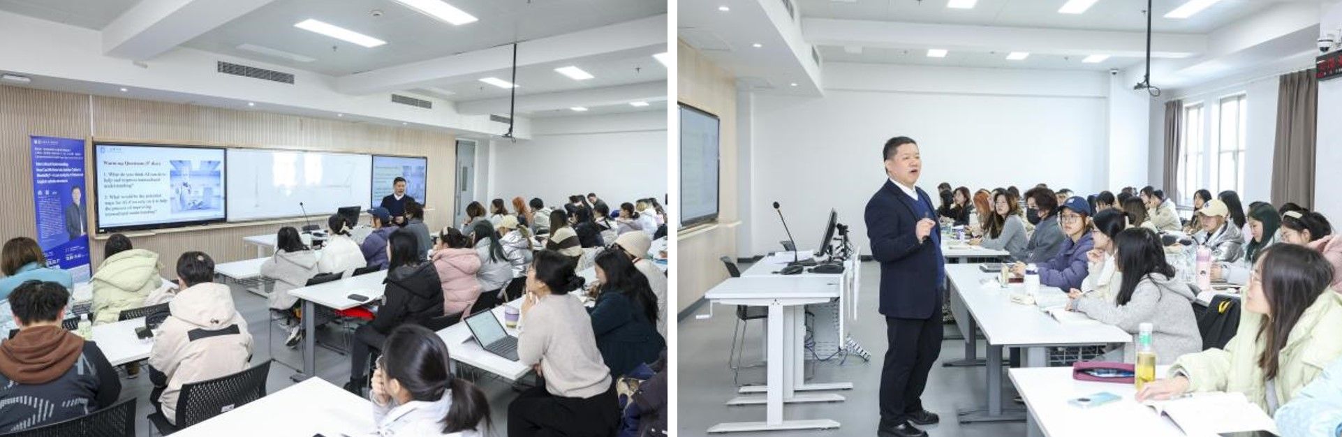 《综合英语(1-3》课程为国家级一流英语本科专业的核心基础课程,得到了学校、学院和英语系的高度重视和大力支持,课程组注重课程品质的不断提升,于2023年11月获批上海市重点课程立项,2025年获得上海市一流课程立项。新学期的开学第一课由课程团队领衔负责人、院长尚新教授担纲,由团队成员于梅欣、金璐和雷远旻三位老师共同策划组织。公开课旨在新学期伊始奠定教与学基调和方向,启发学生从耳熟能详的语言现象入手,探索其背后深刻的文化内涵,同时鼓励师生共同树立专业教与学的目标,关注时代发展,一起探索AI赋能英语教学过程的路径,培育和提升跨文化沟通能力。(林巧、于梅欣供稿)