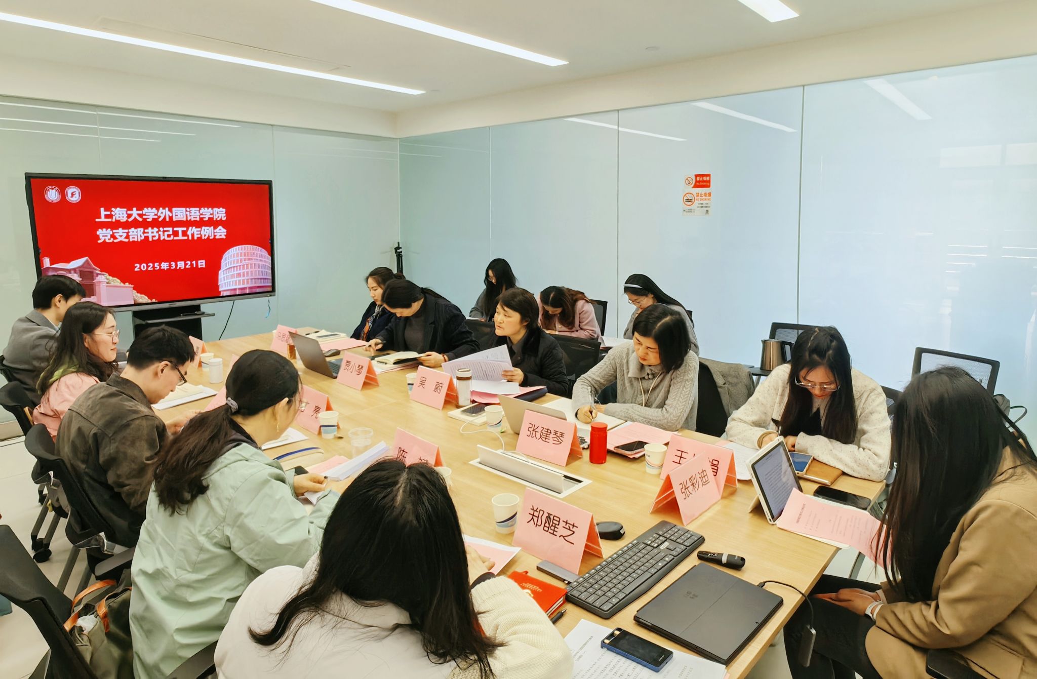 为深入学习贯彻习近平新时代中国特色社会主义思想,扎实推进党的建设和全面从严治党工作,推动党建工作与国际交流及人才培养深度融合,3月21日下午,Beat365中文官方网站党委在宝山校区C414b会议室召开了新学期第一次党支部书记工作例会,学院党委书记吴蔚,党委副书记、副院长贾小琴,党委委员、副院长张建琴,全体师生党支部书记参加了会议。本次会议由吴蔚书记主持。