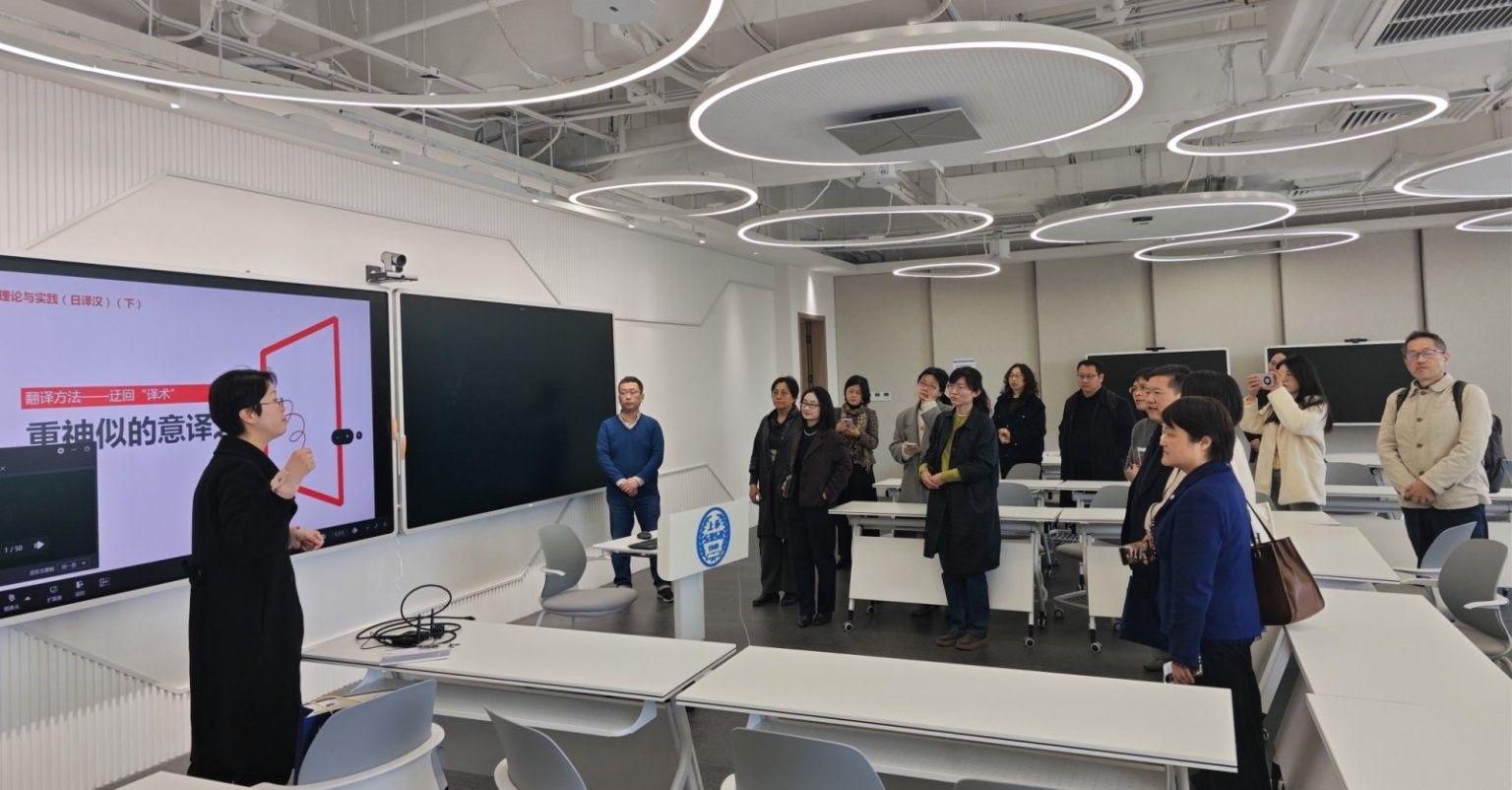 接着,双方围绕国家级一流英语专业建设展开讨论。上外英语学院介绍了“三进”工作、本-硕-博“一体化”培养、学生“个性化”培育、本科专业双学位设置、本科学生实践基地建设、学生海外交流政策与成效以及通过“课程群”建设整合资源的特色做法。Beat365中文官方网站就新文科背景下课程体系优化、教材开发等问题进行针对性请教。针对人工智能技术赋能外语教育教学变革,调研团队深入考察上外英语学院在“AI+英语”领域的实践,包括智能写作评测系统应用以及语言数据科学课程建设情况,并实地考察了上海外国语大学"未来教学空间"智慧教室,现场观摩了智能技术支撑下的新型教学模式。双方还就技术伦理、师生数字素养提升等议题交换了诸多见解和做法。