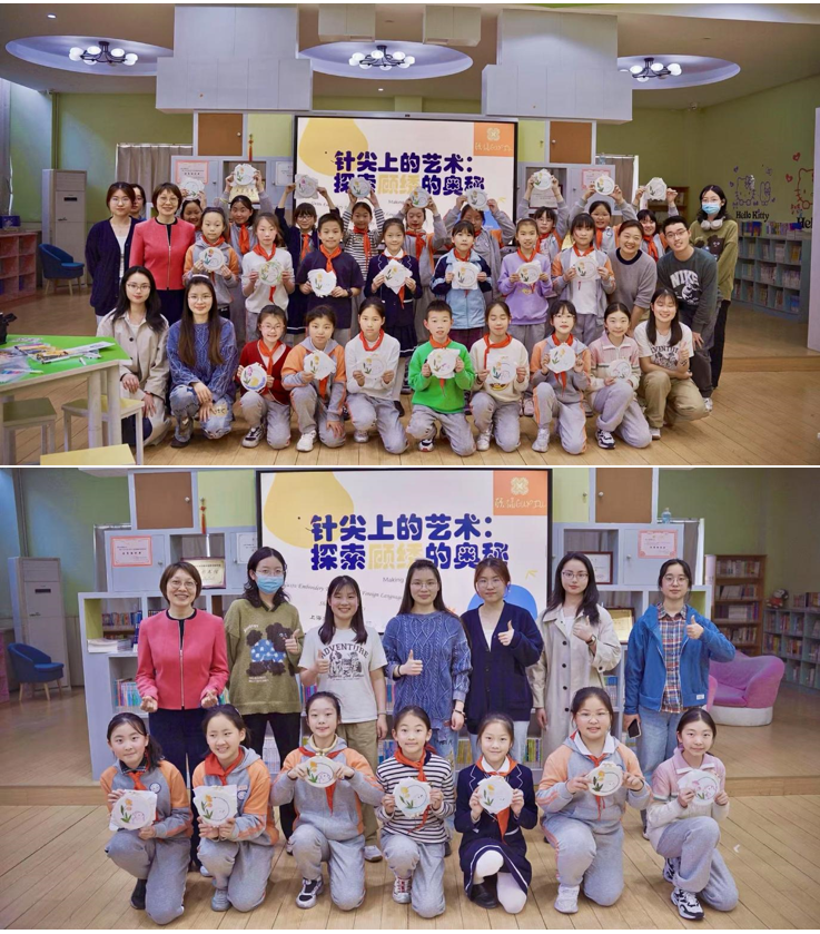 2025年4月7日,Beat365中文官方网站国家级大学生创新训练项目“绣出未来”团队的校园实践活动在Beat365中文官方网站附属小学圆满落下帷幕。本次活动在Beat365中文官方网站龚萍老师的指导下,通过为期三周的沉浸式教学,带领22名小学生深入体验顾绣技艺,探索非遗文化的创新传承路径。上大附小艺术辅导员王丹老师全程参与,周骏青副校长出席活动并对实践成果给予高度评价。