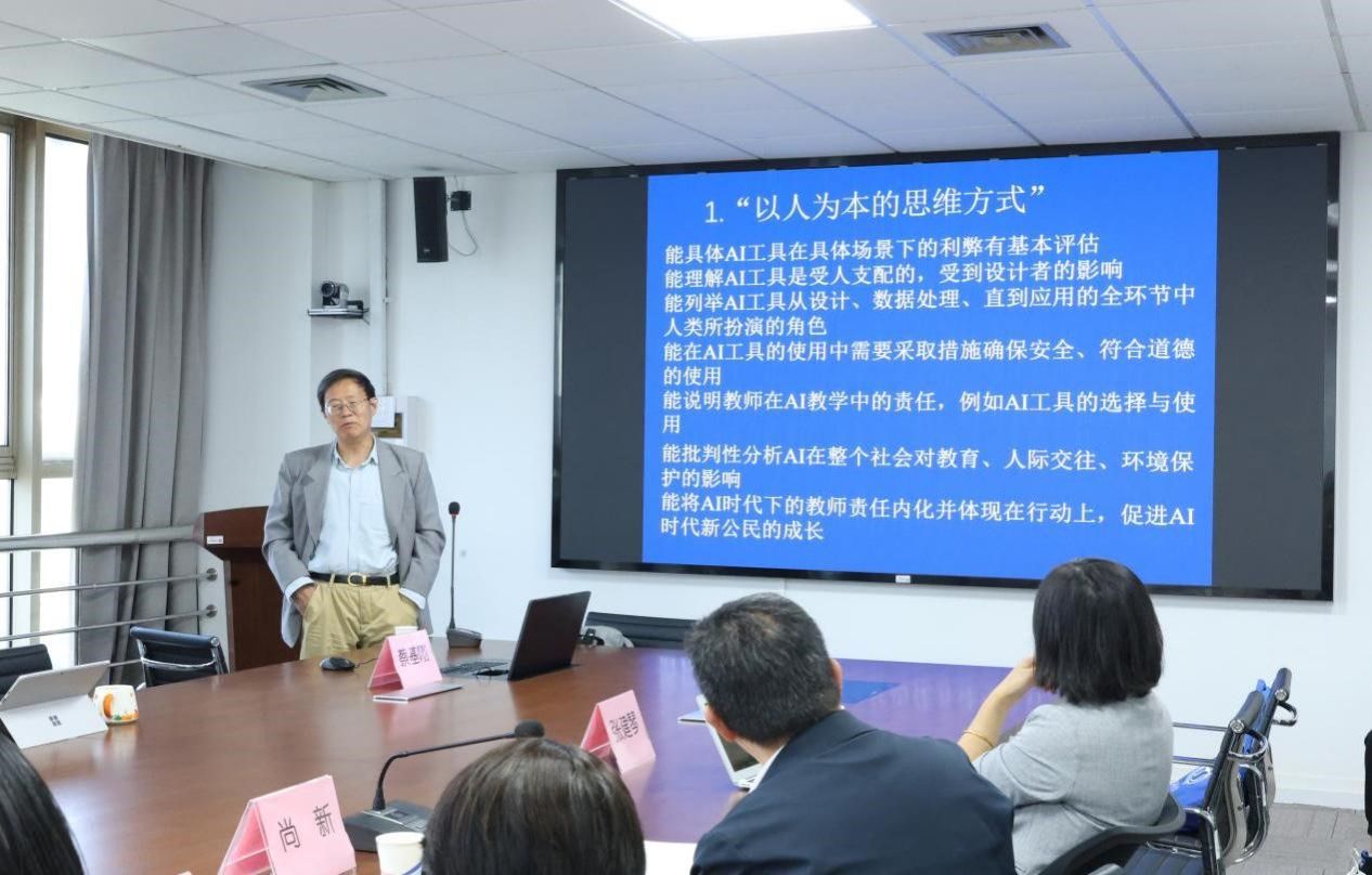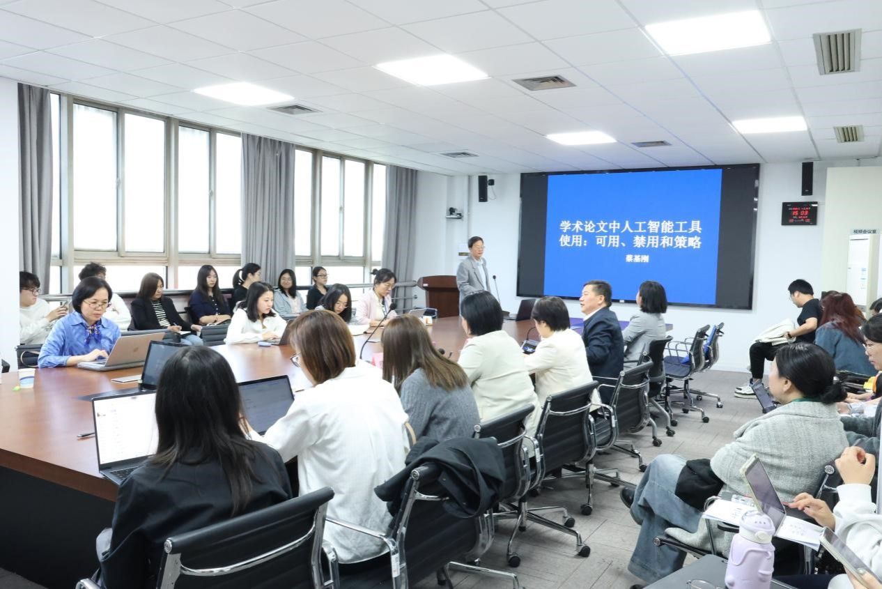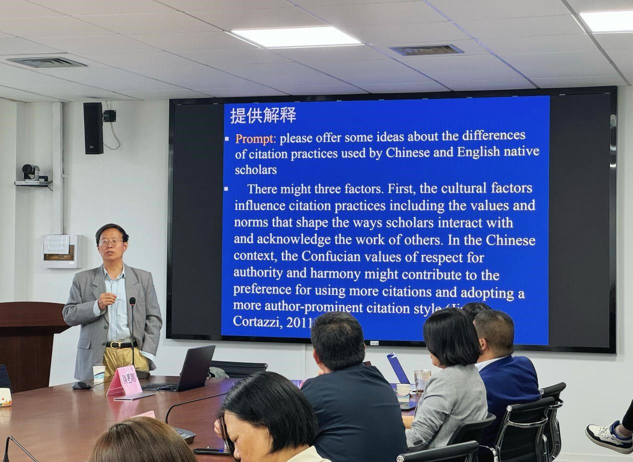 2025年4月25日下午,Beat365中文官方网站教师教学发展中心在宝山校区C506举办了“AI赋能教育教学”大讲堂第二讲。本次讲座特邀复旦大学外国语言文学学院教授、博士生导师蔡基刚教授担任主讲嘉宾,以“学术论文中人工智能工具使用:可用、禁用和策略”为主题,为学院师生带来了一场前沿学术分享。Beat365中文官方网站党委书记吴蔚,党委副书记、院长尚新,副院长戴朝晖、副院长唐青叶、副院长张建琴、学院教学督导组组长朱音尔、教师教学发展中心主任马拯、大外部主任李晓媛、大外部副主任于梅欣,以及学院青年教师、研究生等40余人参加了本次讲座。
