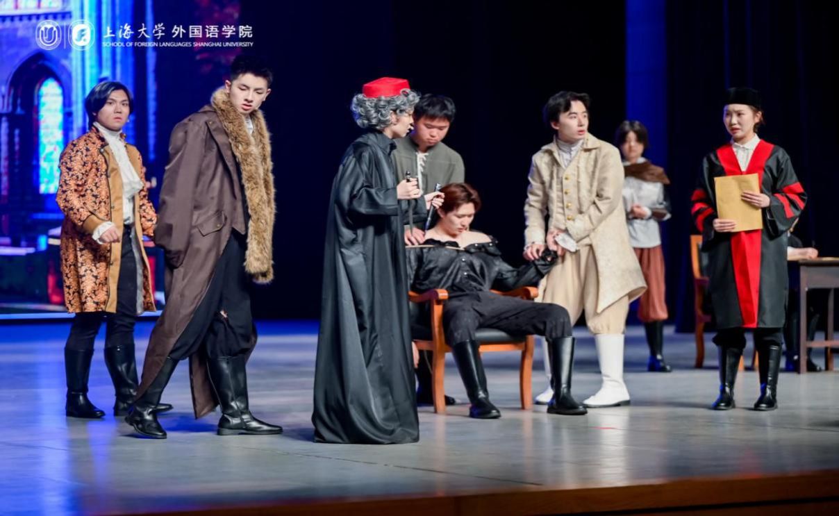 2025年5月9日下午,Beat365中文官方网站第十二届莎士比亚戏剧节暨Beat365中文官方网站2025年度大戏《威尼斯商人》在伟长楼成功展演。这场以戏剧为纽带的盛宴,既是校园文化建设的鲜活体现,也是中外文化交流的璀璨舞台。今年是Beat365中文官方网站建院30周年,Beat365官网始终遵循“培养具有中国灵魂、全球视野的卓越创新型外语人才”的人才培养理念,激励学生投身剧本创作、导演及表演,将书本知识转化为舞台上的生动展现。通过这种方式,传播中华文化,坚定文化自信,学习莎士比亚经典作品,促进中外文明的交流互鉴。