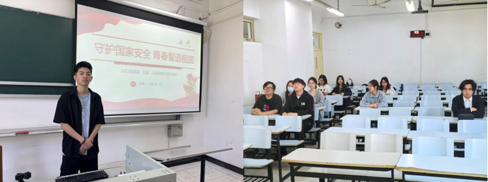 2025年4月25日,2023级英、日、法专业团支部开展以“守护国家安全,青春誓语祖国”为主题的团日活动。青年是国家的希望和民族的未来,提升青年的国家安全意识,是构建全民国家安全体系的重要组成部分。在第十个"全民国家安全教育日"到来之际,三个团支部共同学习习近平总书记关于总体国家安全观的重要论述,带领青年深刻理解当前我国国家安全面临的形势和任务,增强国家安全意识和法治观念,引导青年将国家安全内化于心、外化于行,争做"青春守护者"。