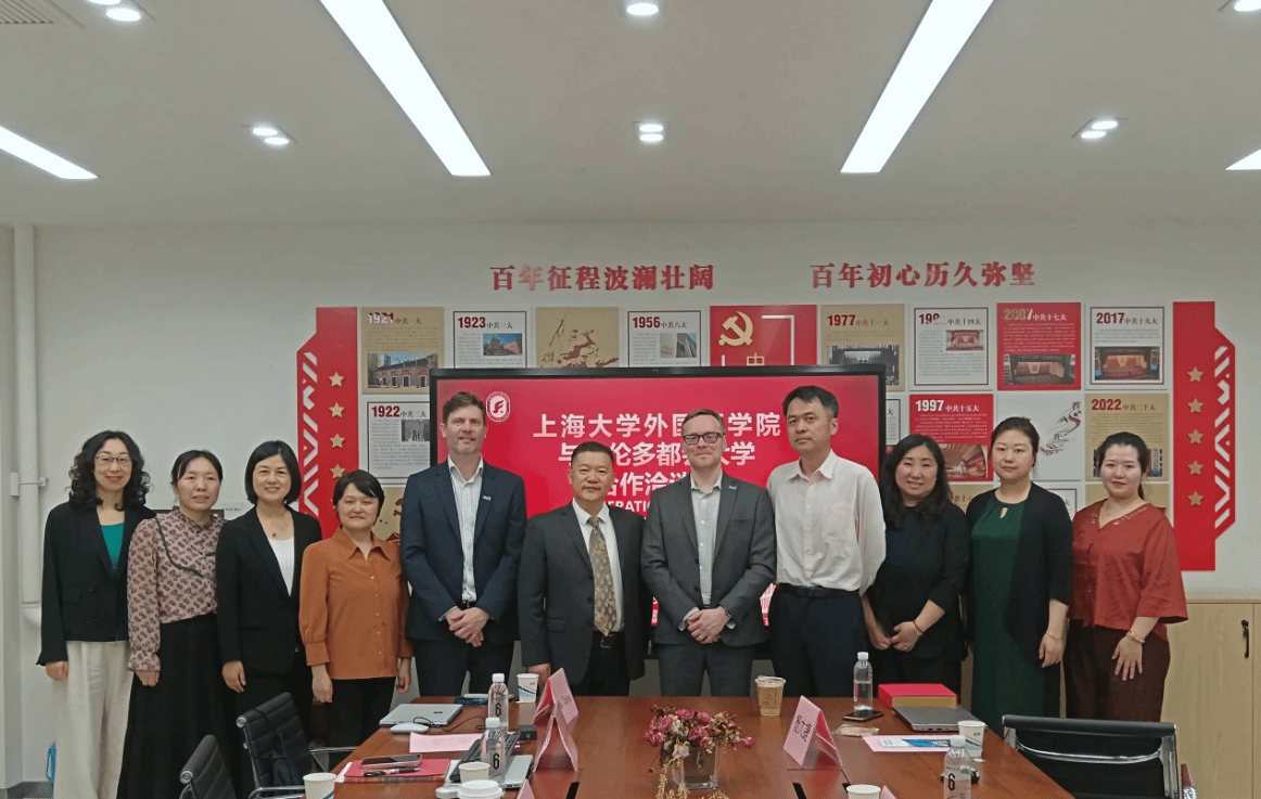 会谈环节开始,尚新院长对Cory Searcy一行表示热烈的欢迎,随后介绍了学院总体情况、学科建设进展及国际合作成果,并回顾了两校自去年11月国际事务部副主任Darren Finlay来访以来已取得的合作进展。Cory Searcy对两校的合作潜力给予高度评价,并介绍了多伦多都会大学的学科优势与国际化办学特色。双方围绕合作备忘录签署、本科升学、硕博联合培养、教师互访、科研合作等议题开展了深入和热烈的讨论。