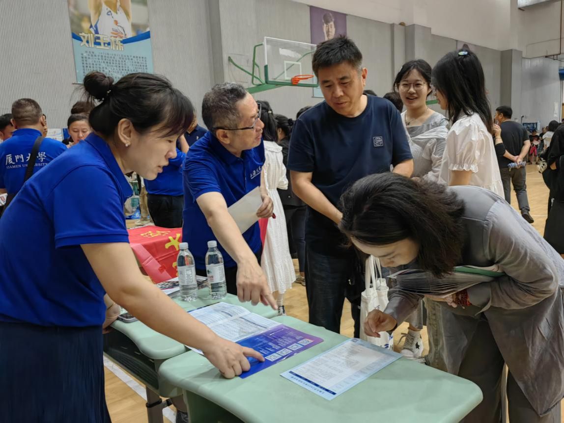 在徐州站,学院招宣工作组重点走访了徐州第一中学紫金校区。咨询现场气氛热烈,学院老师们热情地向考生和家长介绍学院的人才培养体系、专业特色、国际化办学以及毕业生发展前景,耐心解答考生和家长的疑问,努力提供全面精准的信息。值得一提的是,许多考生及家长对学院与海外名校联合培养项目表现出浓厚兴趣,学院老师通过具体实例展示了学生在校期间的成长轨迹。