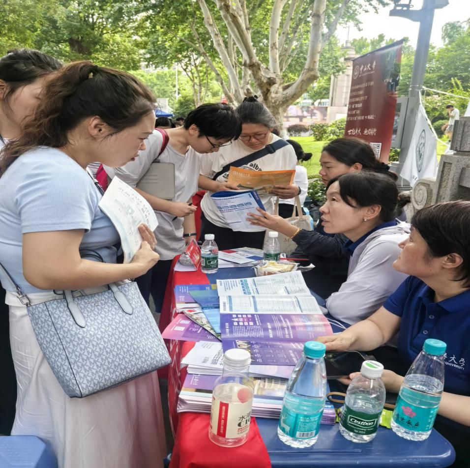 南京站的宣传工作中,学院招宣工作组联合材料学院、中欧学院的招宣老师,在南京师范大学附属中学开展招生宣传。针对前来咨询的考生及家长,老师们系统介绍了学院在外国语言文学、翻译等专业的办学实力,特别强调了学院“小班化、精英化”的教学特色。现场互动环节,老师们就“如何选择适合的外语专业”等热点问题与考生深入交流,帮助其明确专业发展方向。