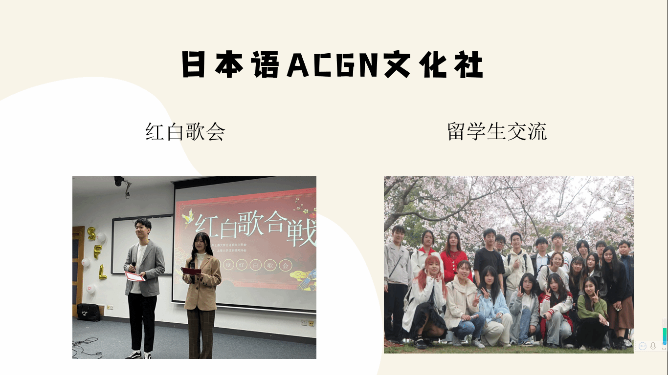 23级林培鑫同学通过线上连线,生动分享了学习专业课的方法,以及所在的日本语ACGN文化社丰富多彩的社团活动,为日语学习注入活力与趣味。他的经历为新生提供了“学有所乐”的精彩范本。