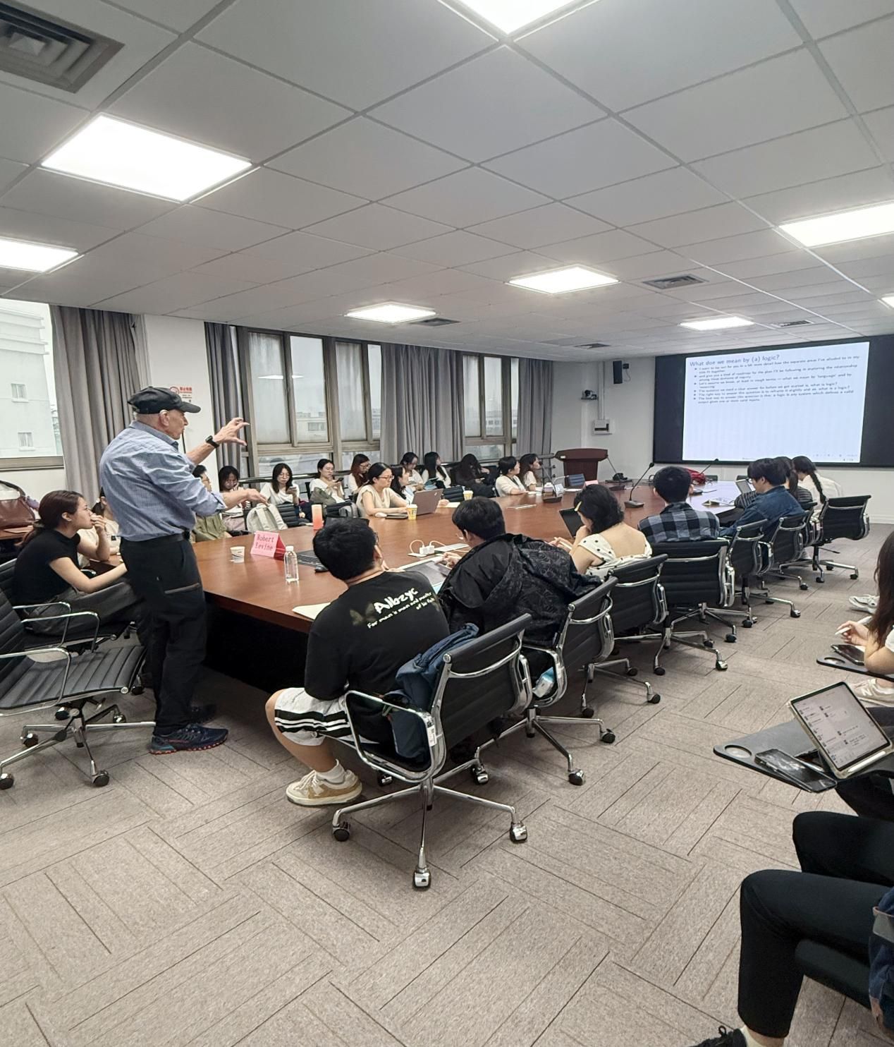 整场讲座逻辑严密、层层递进,既有对经典哲学与语言学理论的回顾,也融合了当代认知科学对语言与思维关系的最新解读。Robert Levine教授以清晰的阐释与生动的语言,引导听众重新审视逻辑的语言起源与推理的言语本质,为理解“何为逻辑”这一问题提供了新的视角。
