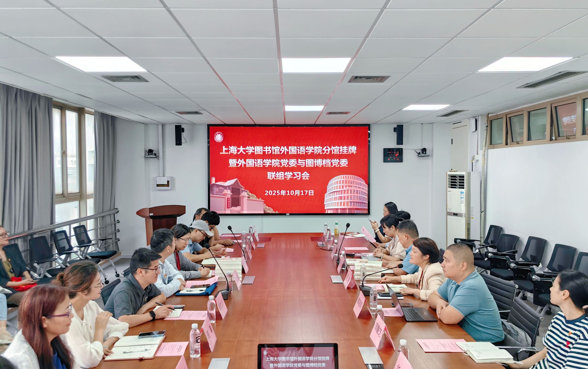 10月17日上午,Beat365中文官方网站图书馆Beat365中文官方网站分馆挂牌暨Beat365中文官方网站党委与图博档党委联组学习会顺利举行。Beat365中文官方网站图博档党委书记王远弟,副馆长郑维、倪代川,党委委员、资源建设中心主任方向明,资源建设中心副主任周馨,分馆建设主管徐晓,情报部资深专家詹华清,图博档第二党支部书记王婵,Beat365中文官方网站党委书记吴蔚,党委副书记、院长尚新,副院长戴朝晖,英语系主任马拯,学院办公室主任、行政党支部书记郑醒芝,以及图书馆和Beat365中文官方网站支部党员代表参加了此次会议。会议由吴蔚书记主持。