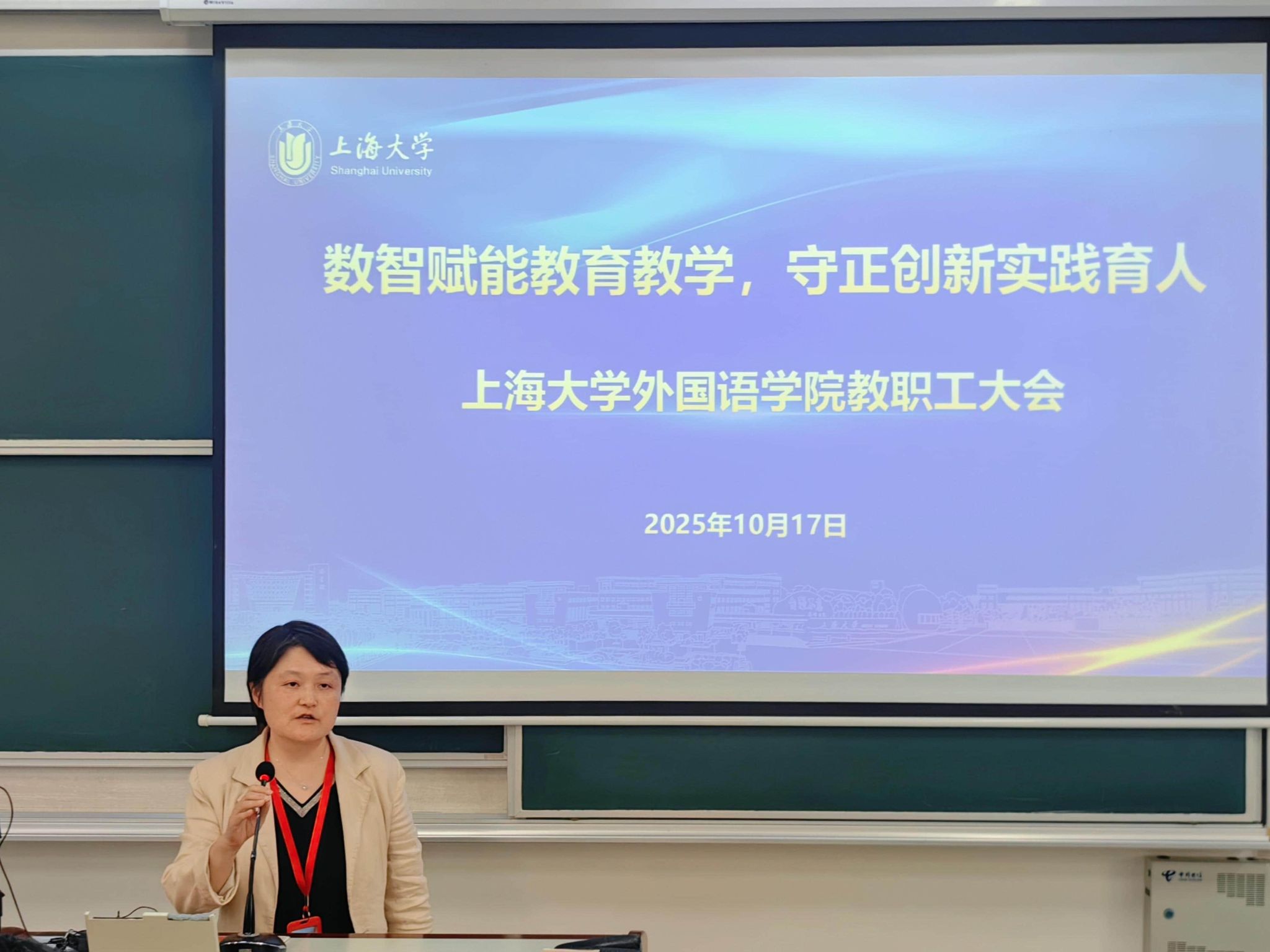 随后,尚新院长主持主题为“数字赋能教育教学、守正创新实践育人”的学院教育教学经验分享会,他表示,此次邀请学院教师来分享交流,旨在结合学院实际,激发全体老师们通过身边的优秀案例去学习和思考AI 赋能教育教学实践创新的可能性。