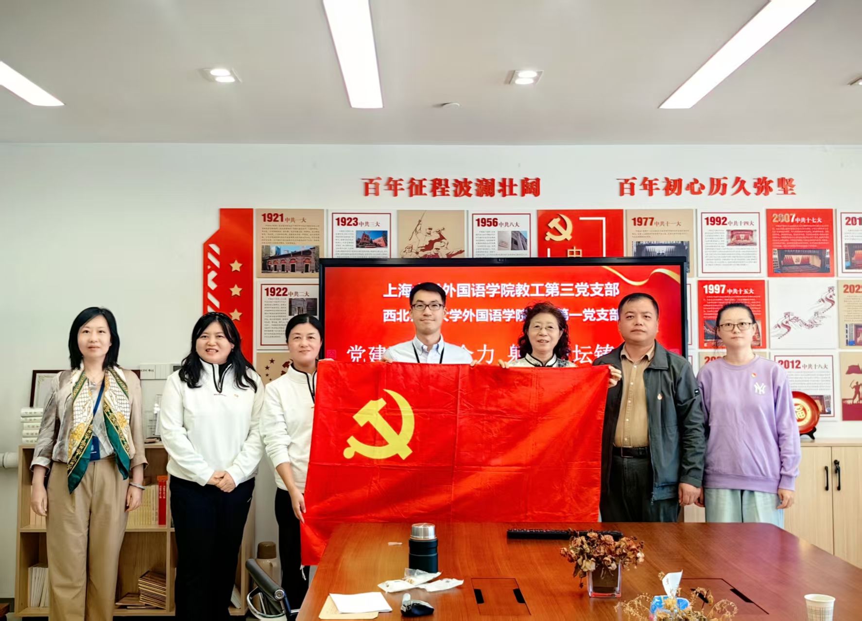 双方一致表示,此次联建活动不仅是经验分享,更是进一步加强合作的契机。通过此次深入交流,进一步明确了合作方向,未来将继续深化党建工作,推动教学科研一体化发展,切实发挥党组织在教育事业中的引领作用。今后,双方将在党建联建的基础上,结合各自优势,共同推动跨校资源共享,提升党支部的凝聚力和战斗力,共同为新时代的外语教育事业贡献力量。(张赫芯供稿)