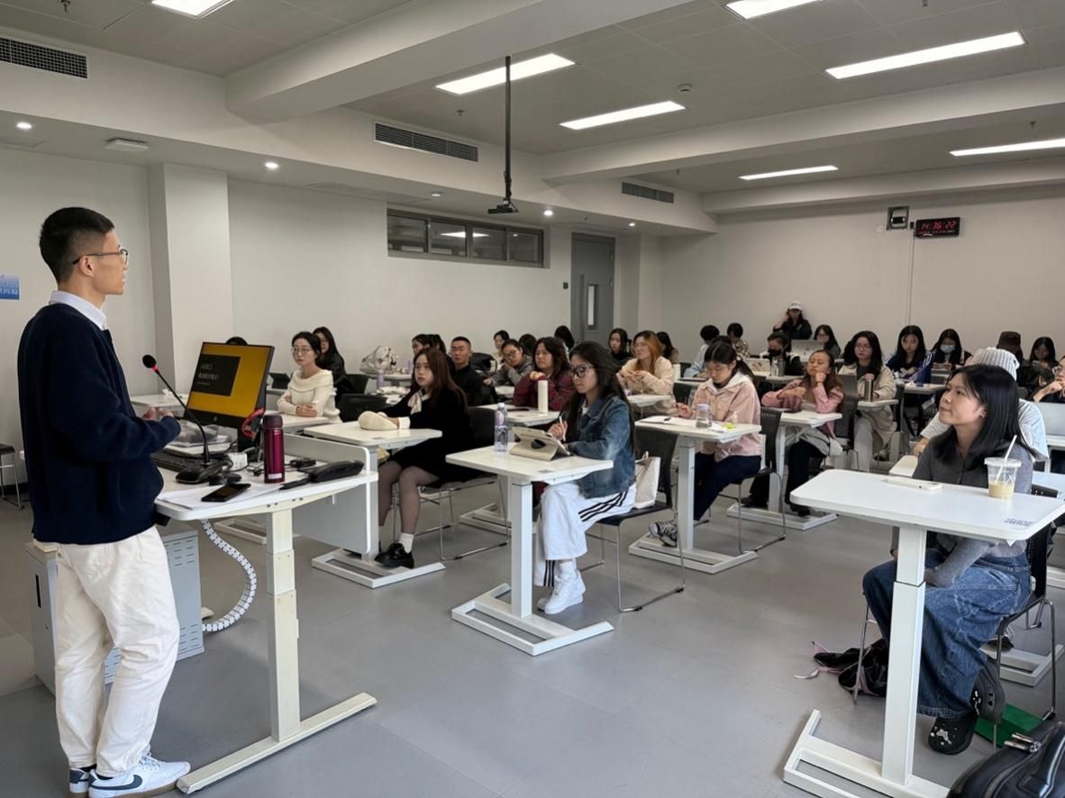 2025年10月24日下午1点,法语系在宝山校区B325教室举办了“中国与法语世界”系列讲座第六讲,邀请南京大学Beat365中文官方网站法语系准聘副教授吴天楚老师为法语系师生开展题为“雨果在中国的经典化之旅:跨文化迁变与跨媒介重生”的讲座。讲座由法语系教师赵倩博士主持,法语系教师王嘉源、顾晓毅以及三十多位本硕同学共同参与。讲座内容丰富充实,现场互动热烈,学生提问积极,取得了圆满成功。