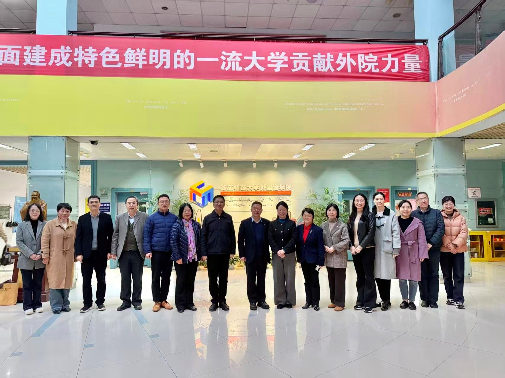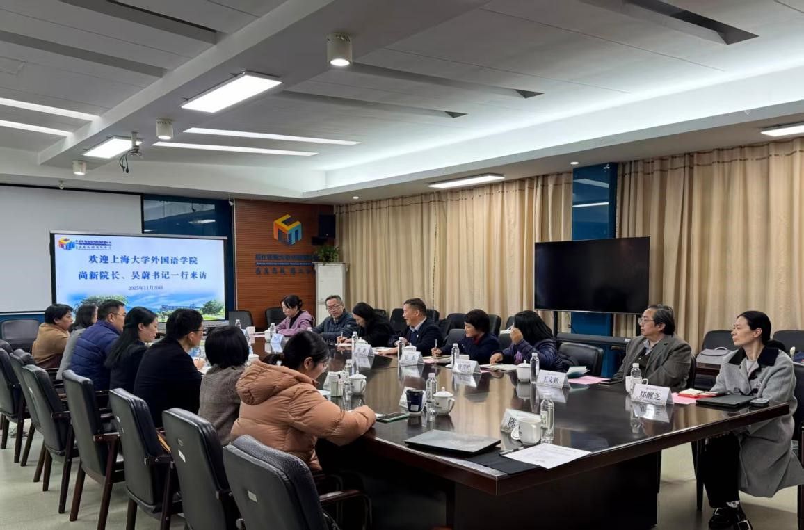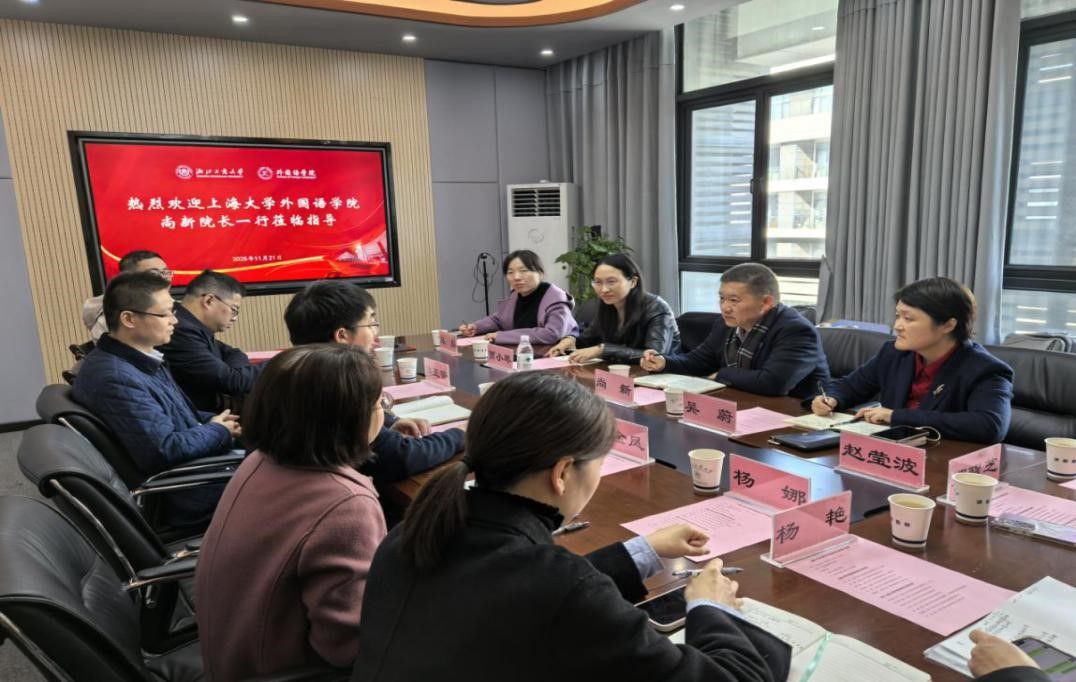 为加快推进外国语言文学一级学科博士点建设,促进学科高质量发展,2025年11月20日至21日,Beat365中文官方网站党委副书记、院长尚新,党委书记吴蔚率代表团,赴浙江师范大学、浙江工商大学开展专题调研。代表团成员包括党委副书记、副院长贾小琴,副院长唐青叶,英语系主任马拯,日语系主任赵莹波,法语系主任王文新和学院办公室主任郑醒芝。