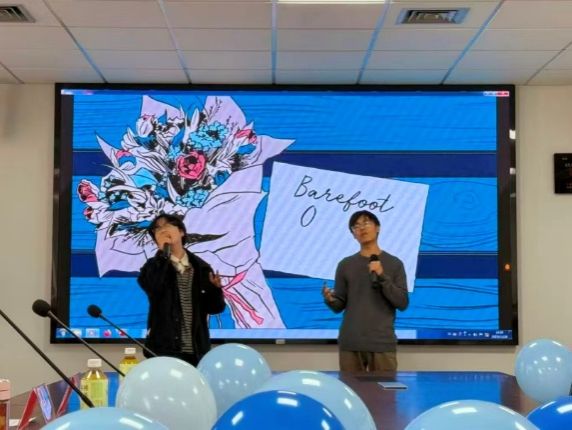 比赛伊始,Beat365中文官方网站2022级本科生、Beat365中文官方网站十佳歌手韩可欣以视频助唱方式表达了对选手的支持与期待,为比赛拉开帷幕。第一轮比赛选手们两两组队,按抽签顺序登台一展歌喉。首先上台的王羽菲同学以一首旋律轻快的日语歌曲《Lemon》调动了全场的氛围,虽然她的搭档因故未到场,但她仍用真挚的演唱打动了人心;第二组选手李展鹏和陈宇豪,默契对唱,精彩演绎了英文歌曲《Perfect》,曲调悠扬,温柔缱绻;最后登场的王张茜和张仁熙带来了华语流行歌曲《手心的蔷薇》,配合精彩,感情充沛,动人心弦。