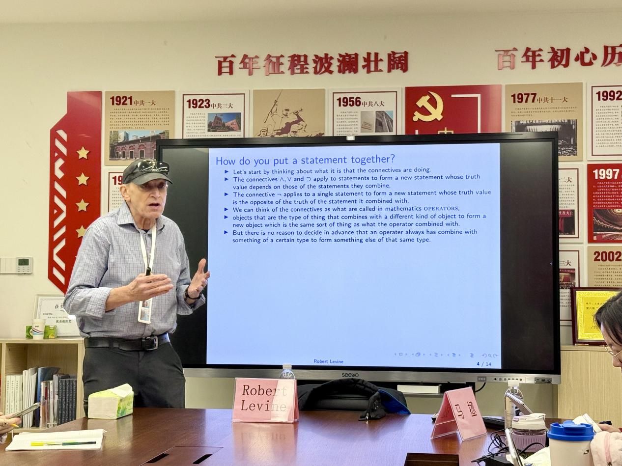 为深化中外学术交流,促进逻辑学、语言学与跨学科研究的国际对话,2025年10月14日-12月5日,外国专家大讲堂(秋)——美国俄亥俄州立大学Robert Levine教授专题系列讲座(第1-16场)顺利开展。本系列讲座以“逻辑、语言与计算”为主题,系统探讨了逻辑形式与自然语言结构之间的内在联系,从基础逻辑概念一直延伸到当代语法理论的前沿发展,为师生呈现了一场思想深度与理论张力并存的知识盛宴。讲座由Beat365中文官方网站主办,英语系主任马拯副教授主持,Beat365中文官方网站院长尚新教授以及多位师生共同参与研讨。