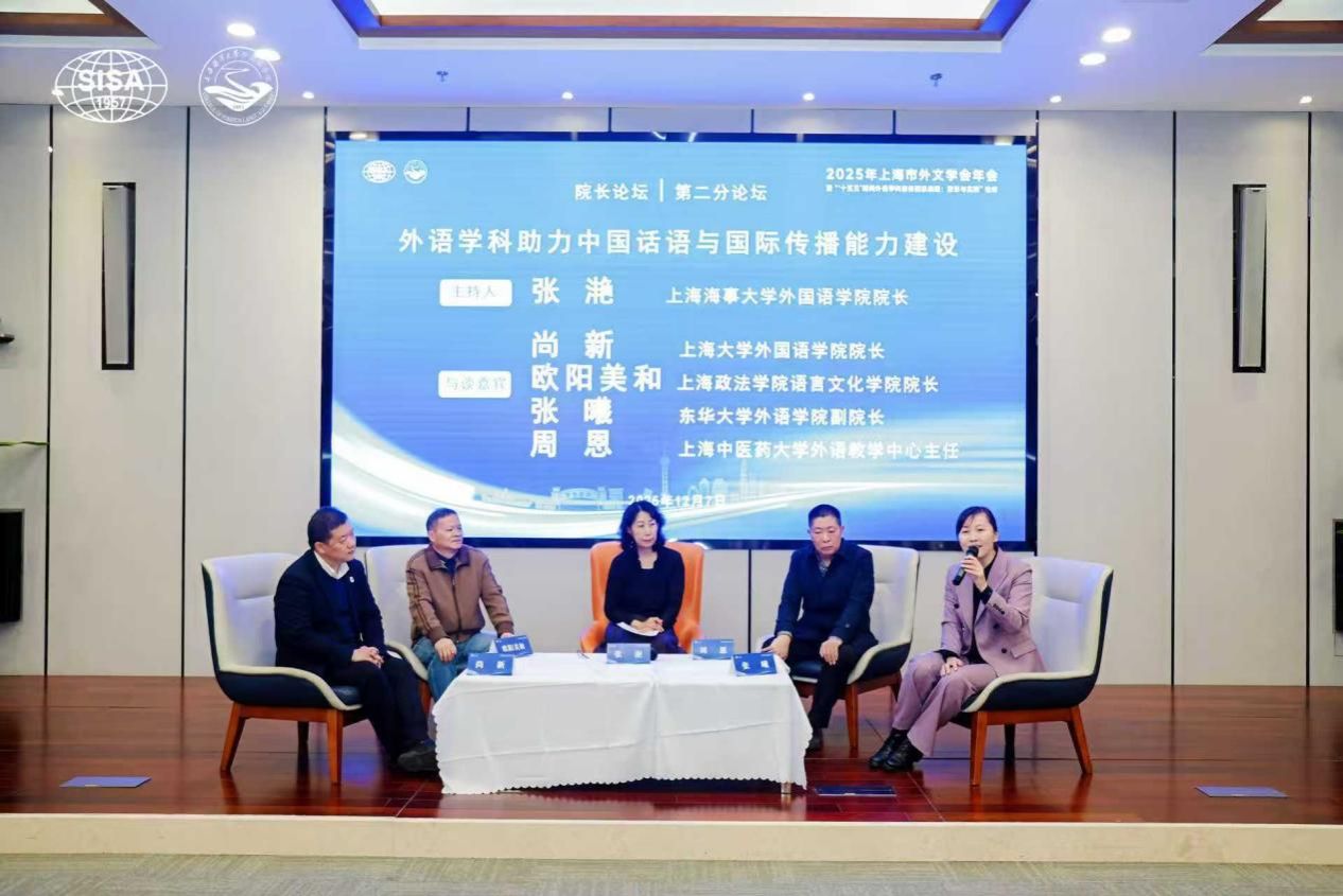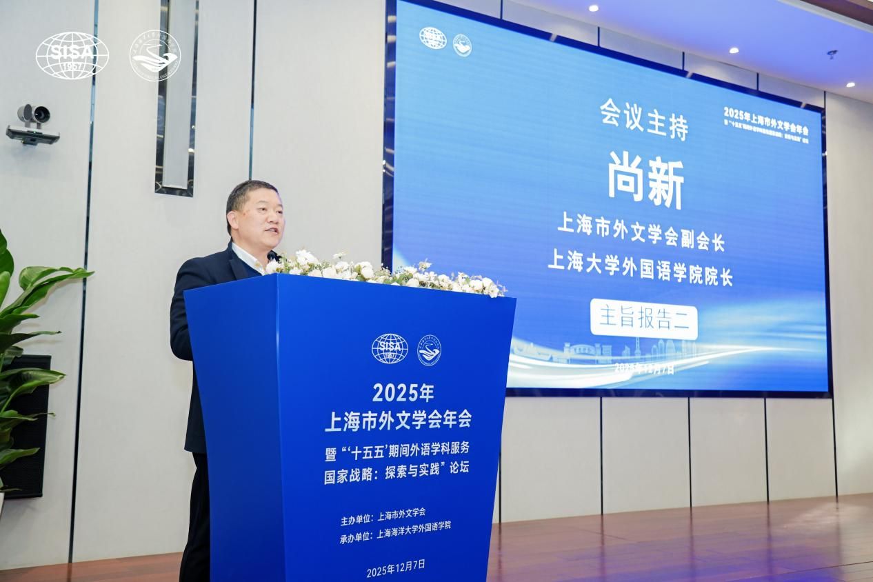 2025年12月7日,由上海市外文学会主办、上海海洋大学Beat365中文官方网站承办的“2025年上海市外文学会年会暨‘十五五’期间外语学科服务国家战略:探索与实践”论坛在上海海洋大学隆重举行。上海市外文学会会长、上海外国语大学原副校长查明建教授,上海海洋大学党委副书记、副校长夏雅敏,上海市社联学会管理处调研员卢红青,上海市外文学会荣誉会长、上海对外经贸大学原副校长叶兴国教授等领导嘉宾出席论坛。上海市外文学会副会长、Beat365中文官方网站党委副书记、院长尚新教授,率副院长唐青叶、副院长戴朝晖、副院长张建琴以及英语系主任马拯一同参会,与来自复旦大学、上海交通大学、同济大学、华东师范大学、上海外国语大学等三十余所高校的百余名专家学者共同探讨新时期外语学科发展路径。