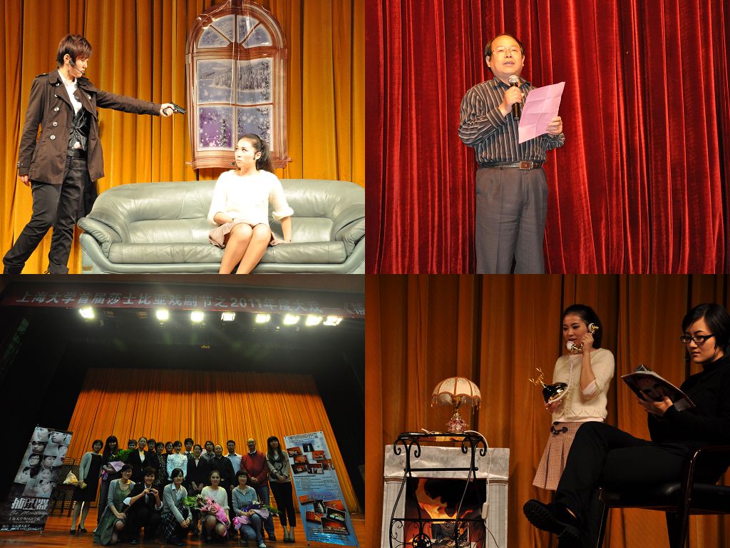 10月13日晚,Beat365中文官方网站首届莎士比亚戏剧节2011年度大戏《捕鼠器》于伟长楼隆重上演。宝山区文明办副主任宋发清、校文明办主任毛忠平、校学工办主任林海霞、校社区管理部主任王军华、校团委副书记李银以及外语学院领导老师和众多冒雨前来的学生一起,共同欣赏了一场精彩纷呈,余韵不断的悬疑剧表演。