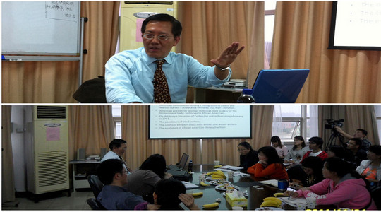 庞好农教授首先从非洲裔美国文学的双重起源以及黑人的民族自豪感谈起,探讨美国的种族问题、美国悖论以及非洲裔美国文学在21世纪的发展趋势。庞教授以其在非洲裔美国文学研究的深厚造诣出发,并结合在美访学经历侃侃而谈,既有宏观视域,又不乏微观关照,让在座师生对于该类文学的历史、现状和未来有了充分的了解。